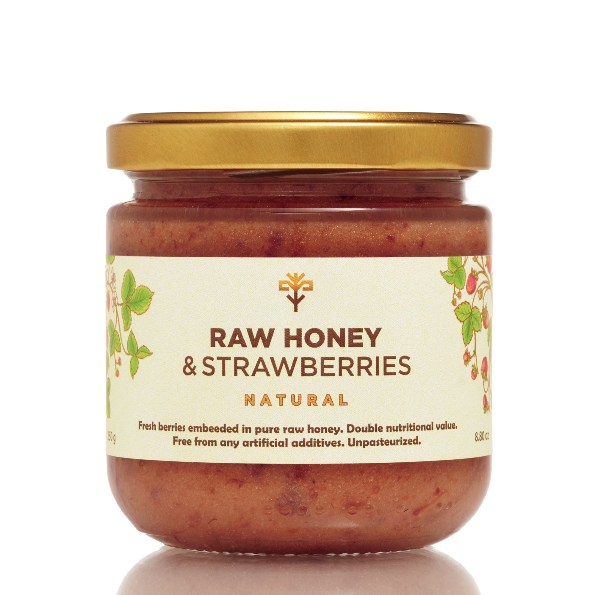 100% Natural Raw Honey with Fresh Strawberries. (250g / 8.82oz) Honey with Strawberries is a delicio...