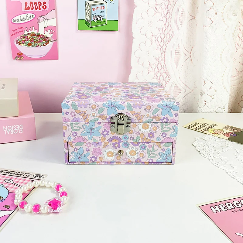1 Piece Pink Sunflower Double layered Music Jewelry Box Cardboard w...