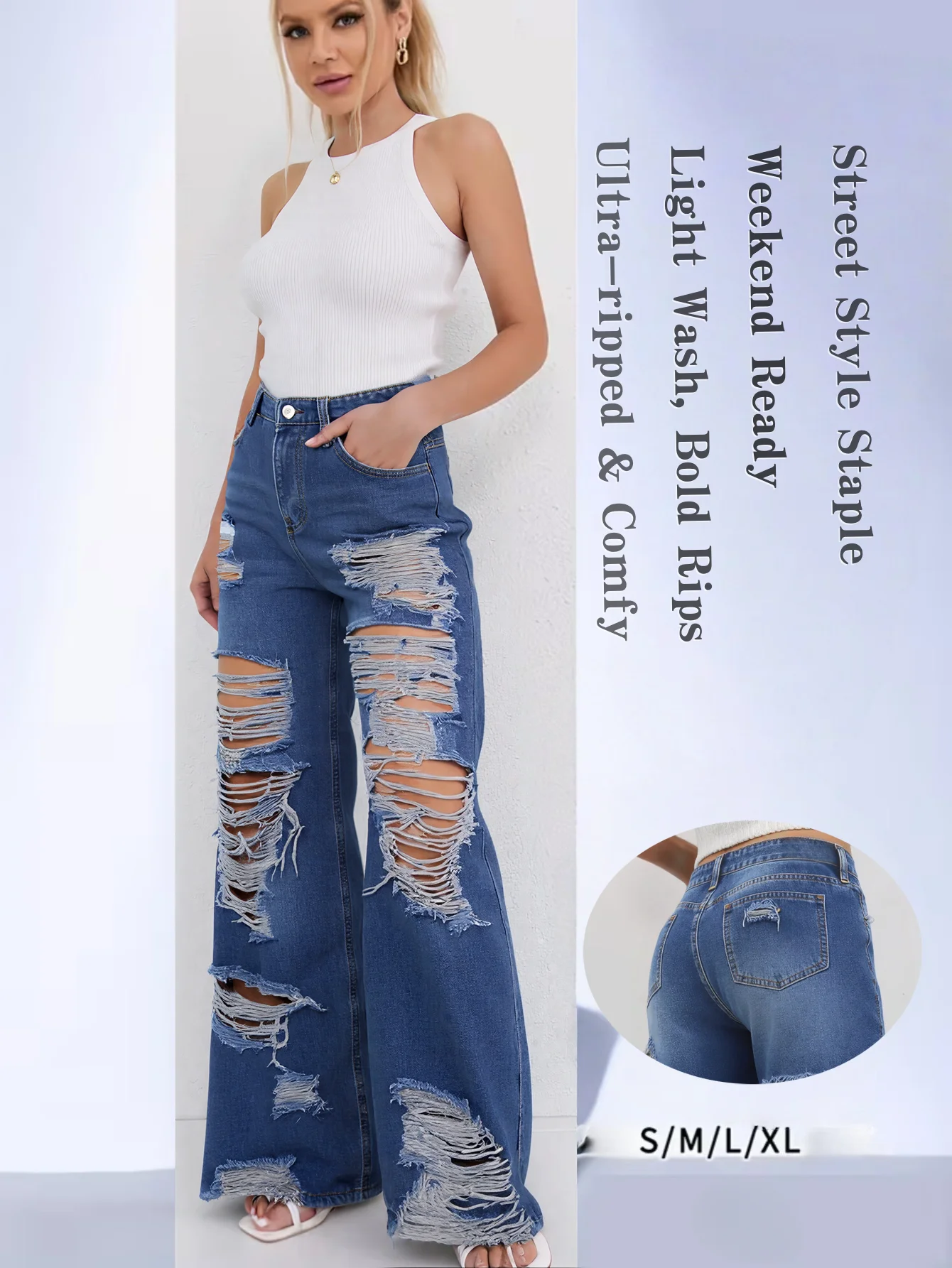 Women's High Waist Straight Leg Jeans Vintage Streetwear Loose Wide Leg Ripped Denim Pants Casual Al...
