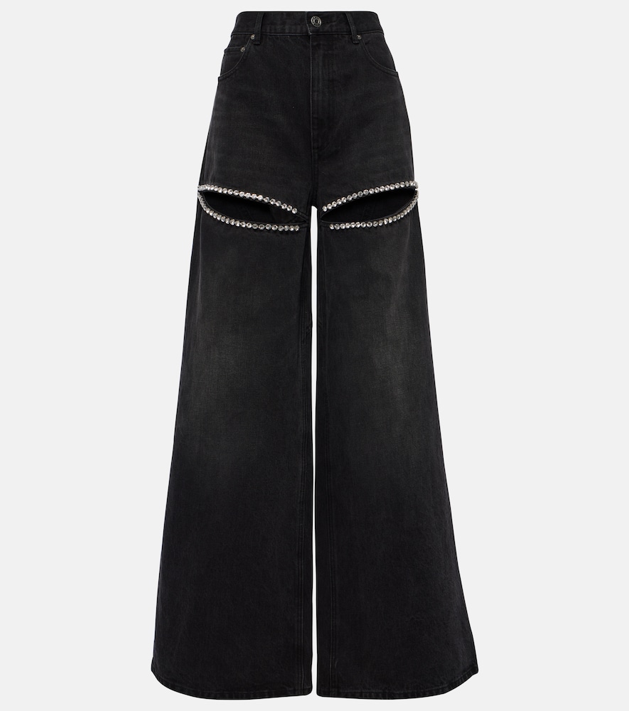 Area, Crystal-embellished wide-leg jeans, Women, Black, 29, Jeans, ...