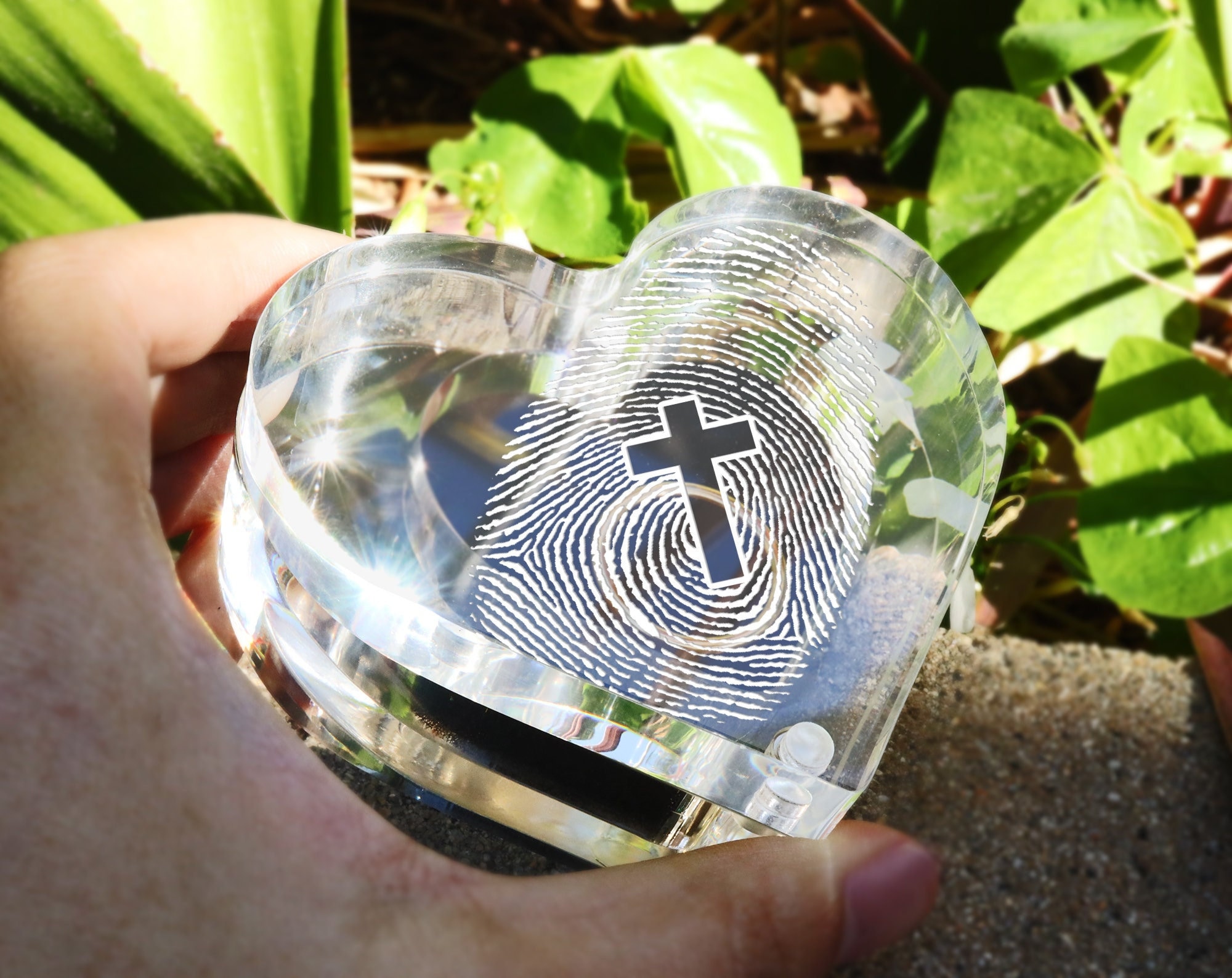 Actual Fingerprint Cross Wedding Ring Box, Personalized Jewelry Box...