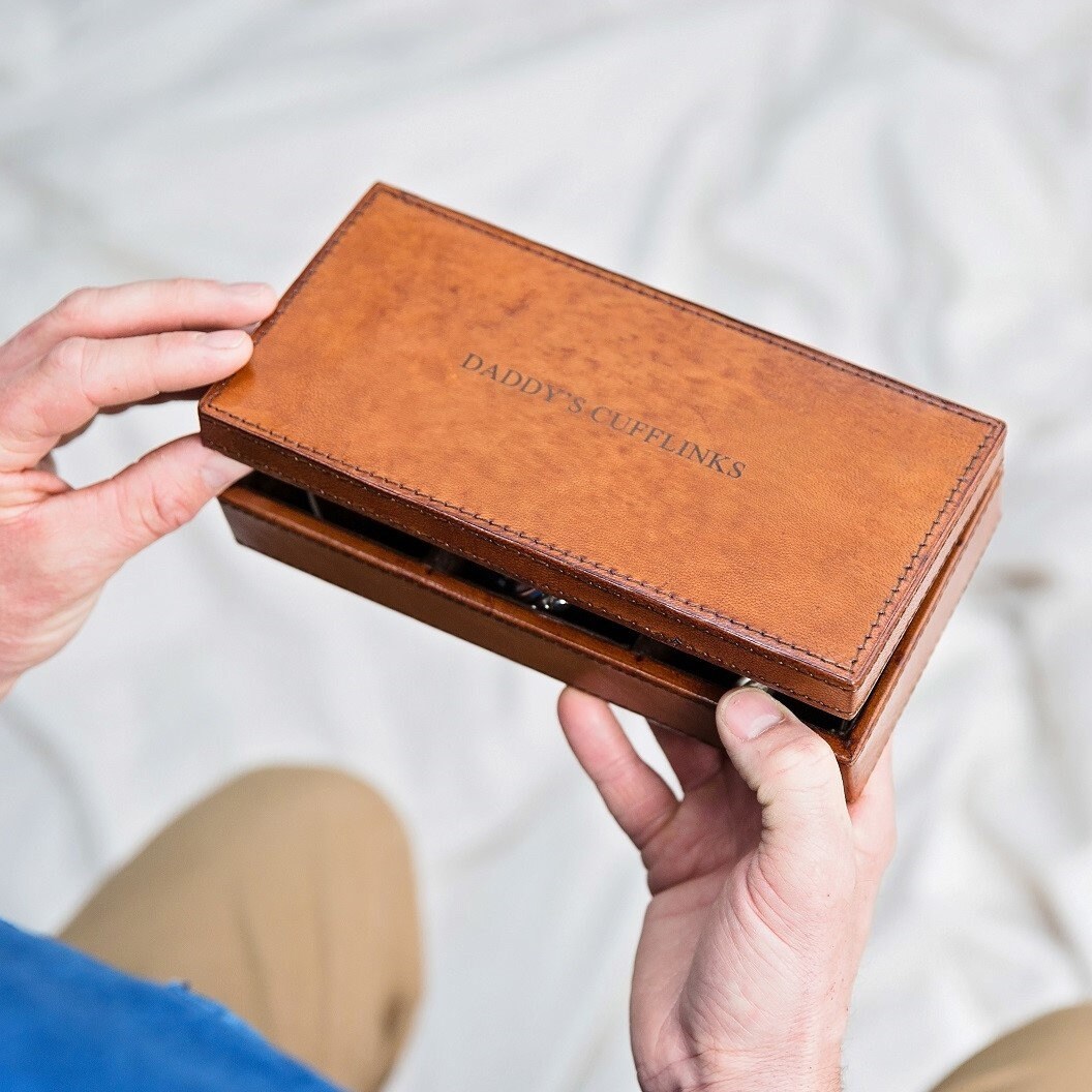 "Personalised Leather Cufflink Box \"Daddy's Cufflinks\&q...