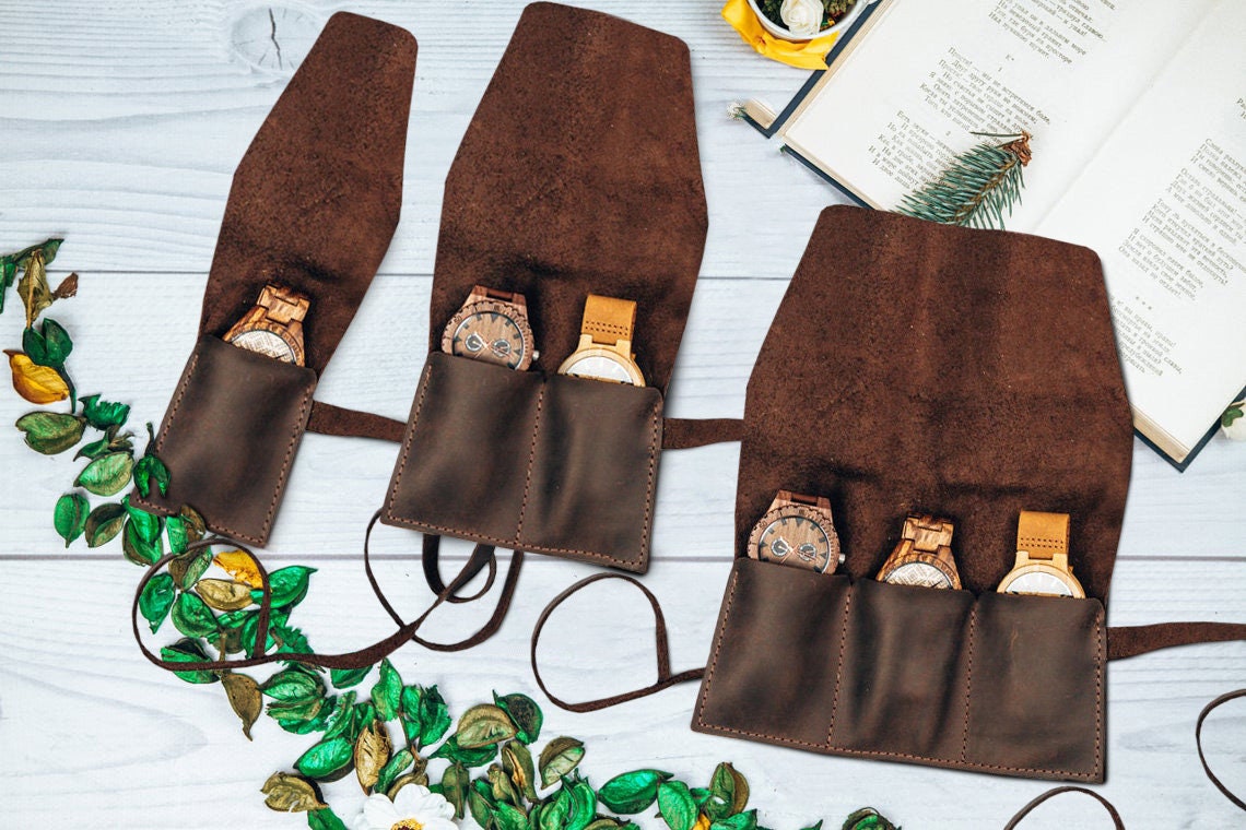 Watch roll - leather watch roll for 3 watches, single watch, mens w...