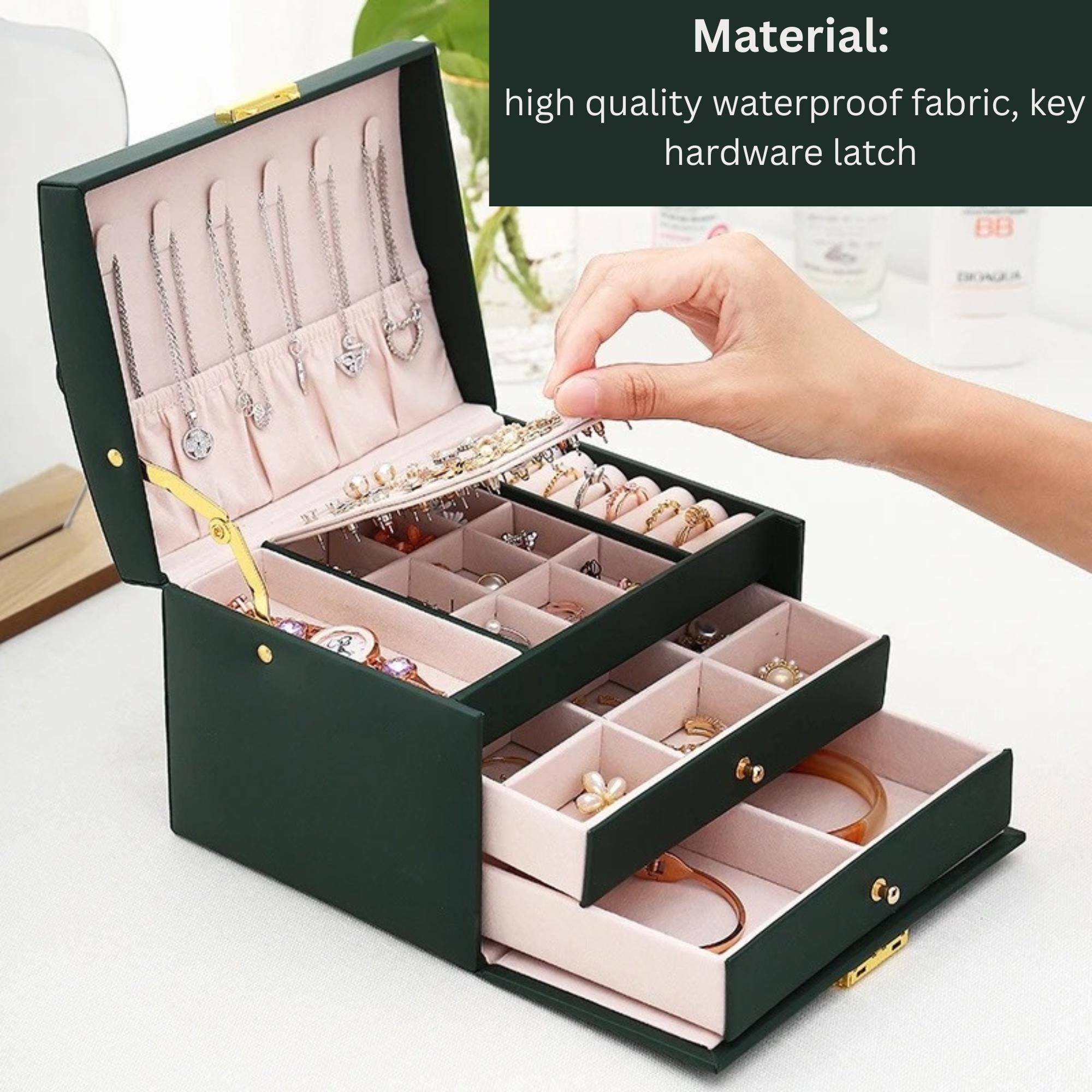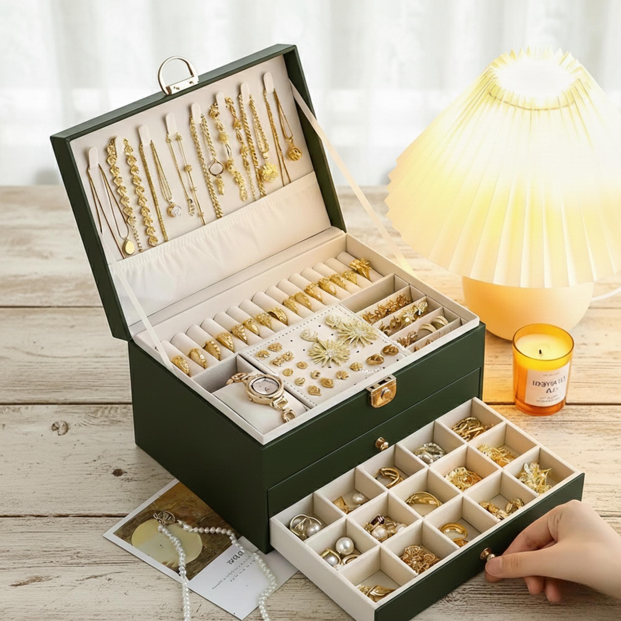 Three-Layer Leather Jewelry Box with Lock | Drawer Organizer for Ea...