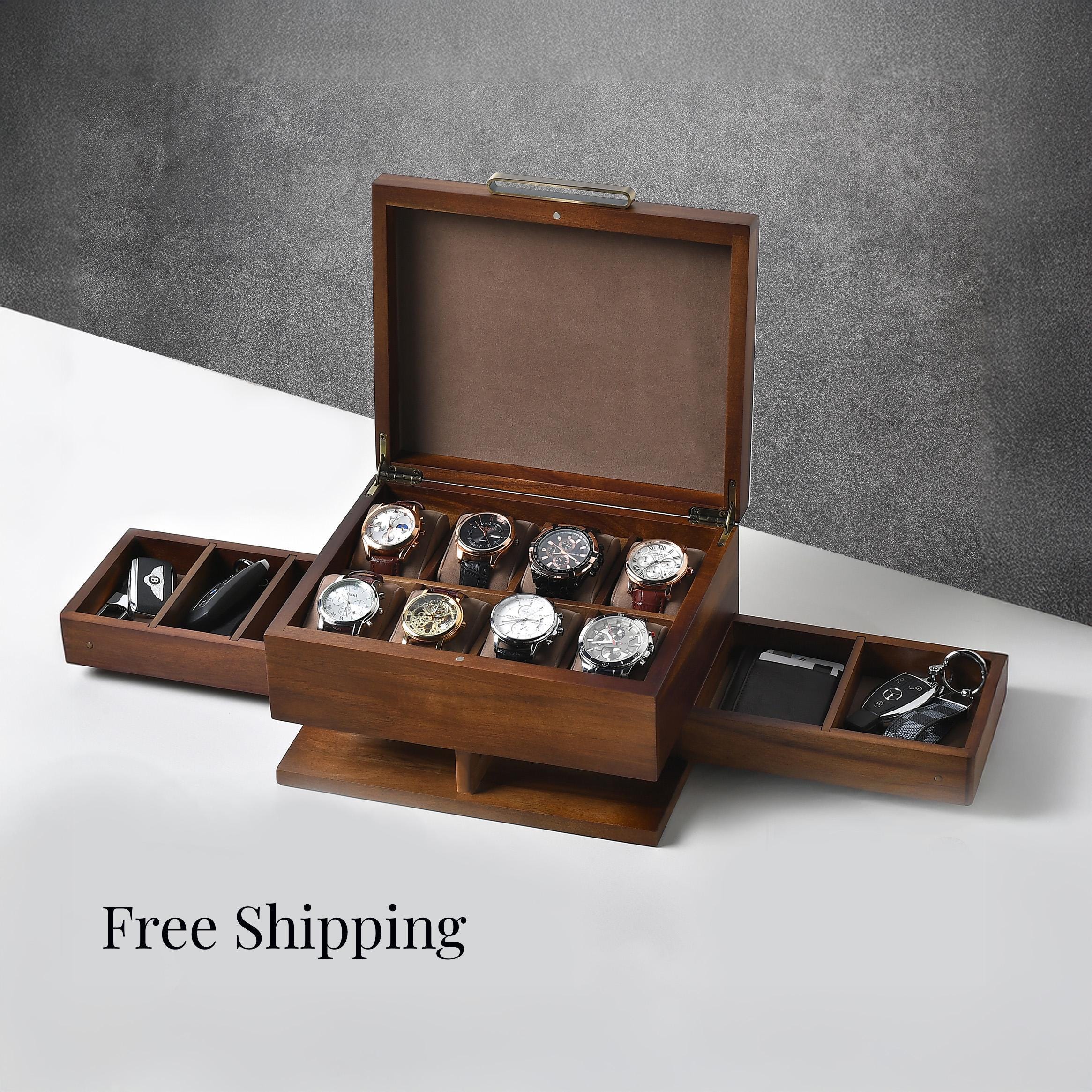 Wooden 8 Watch Case for Men Accesories Organizer Two Drawers Jewelr...