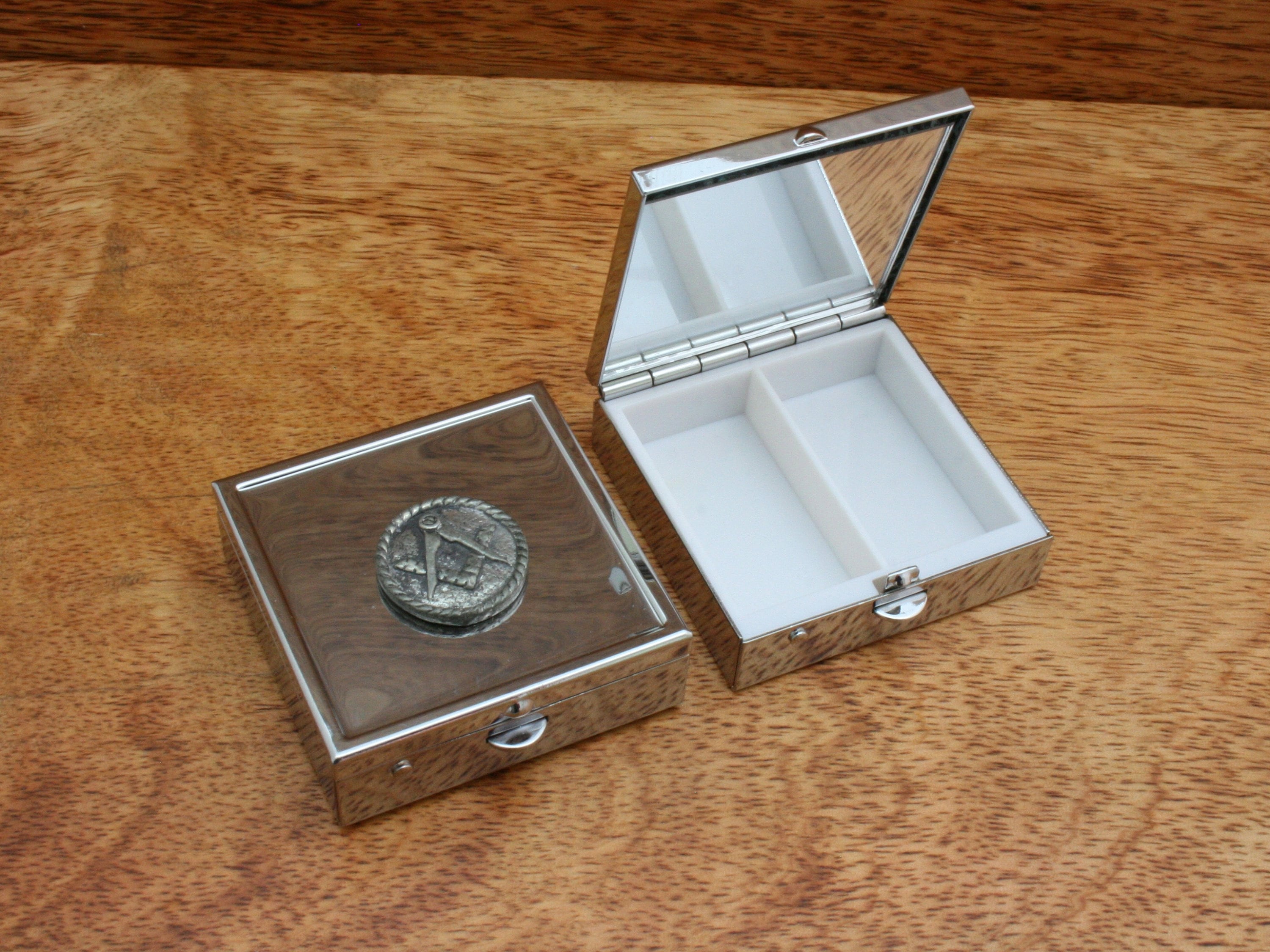 Masonic and Templar Pill Mint Trinket Box With Mirror Square Masonr...