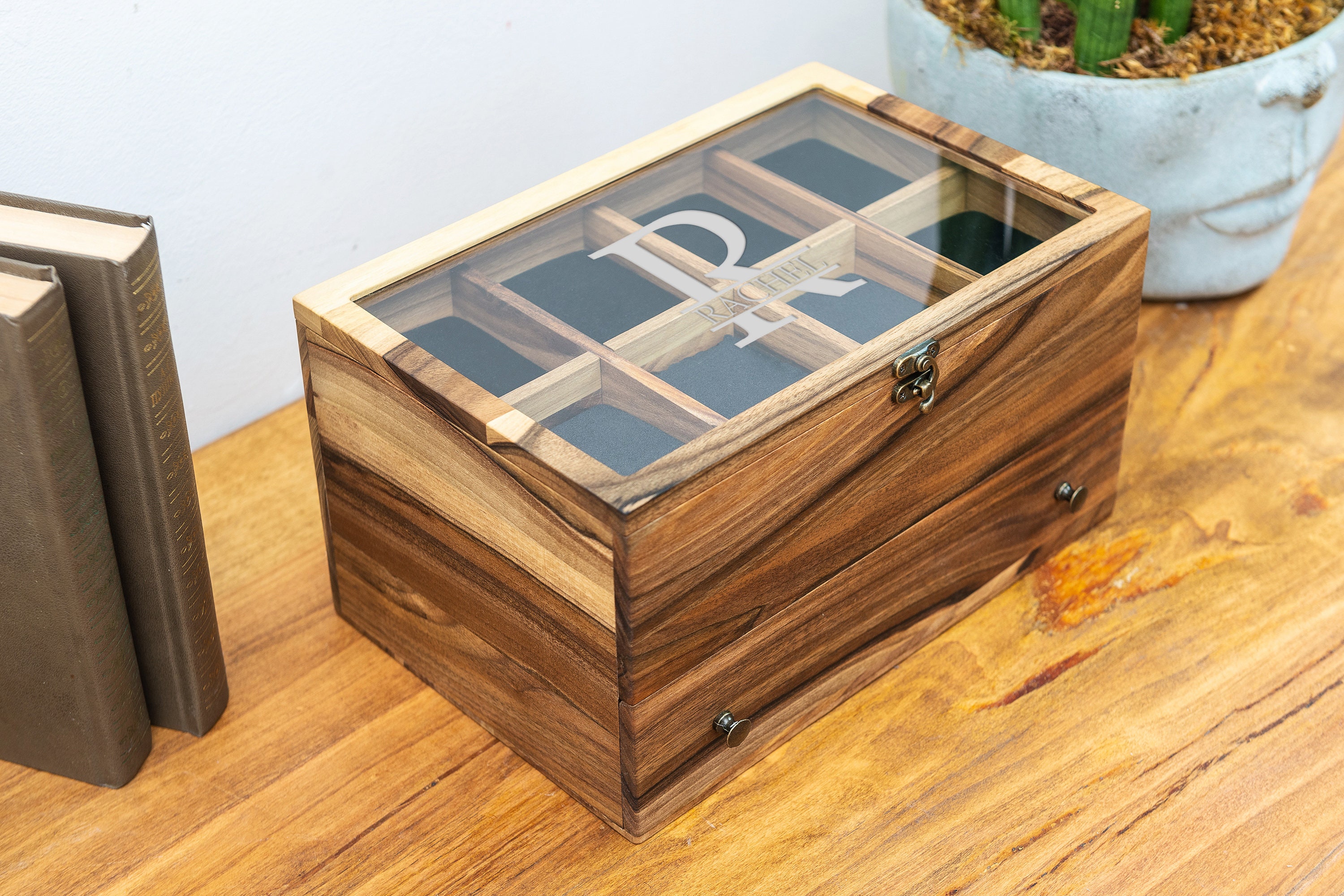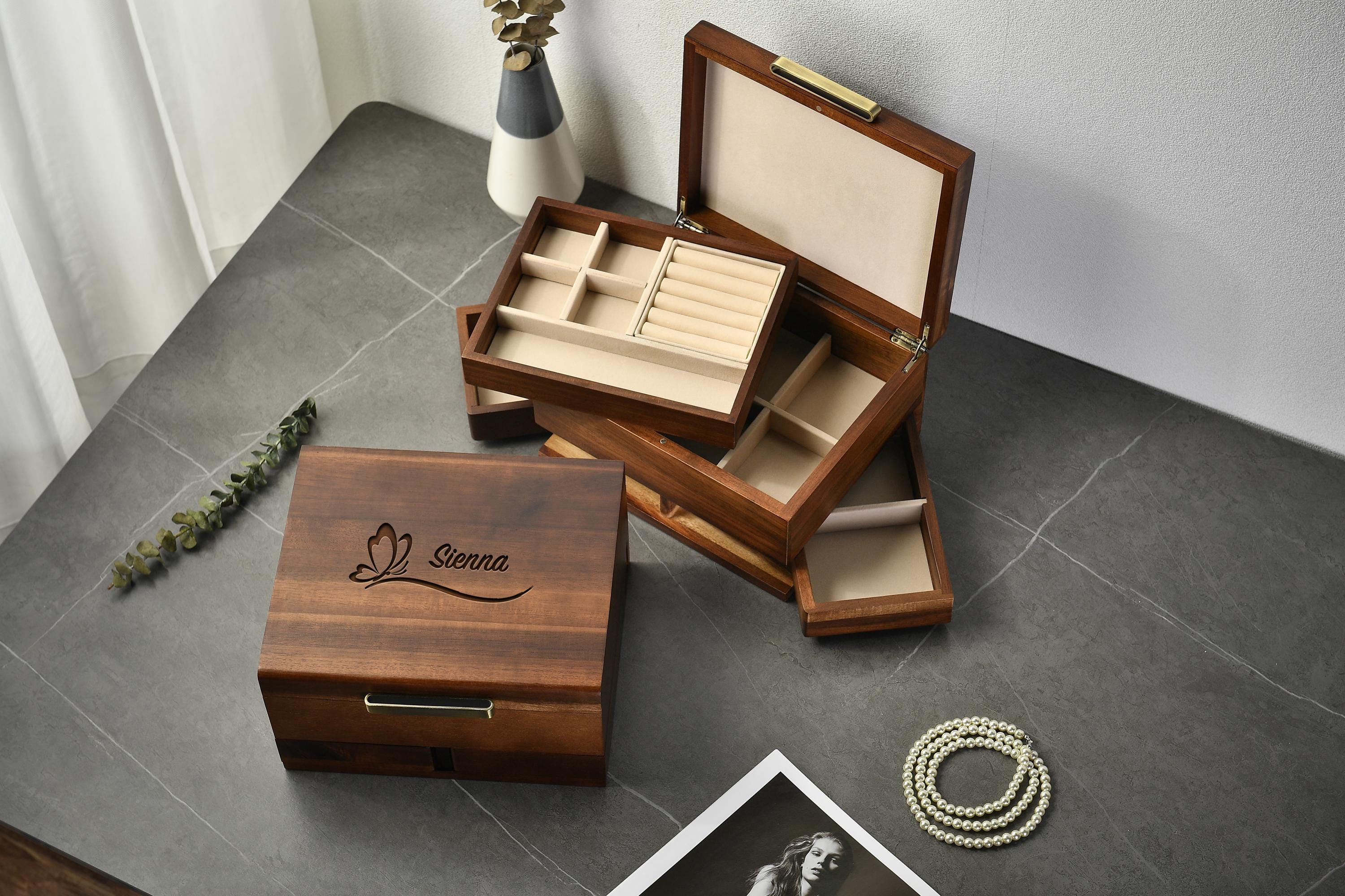 Custom Engraved Wooden Jewelry Box with Drawers, Jewelry Organizer,...