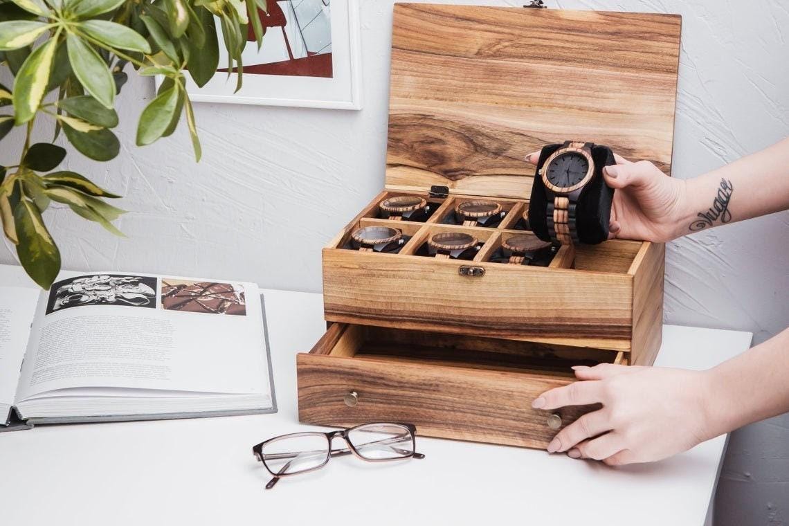 Mens watch box with drawer,Watch box for men personalized,Custom wo...