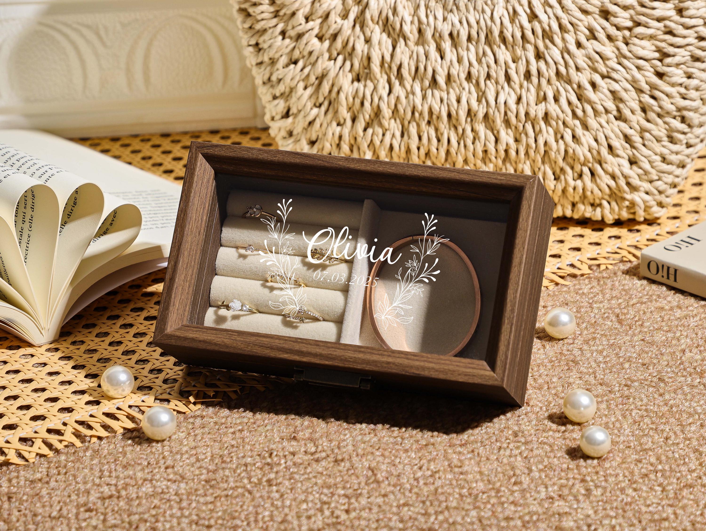 Custom Engraved Walnut Wood Storage Box, Wooden Earring Bracelet Necklace Rings Watch Organizer Box,...