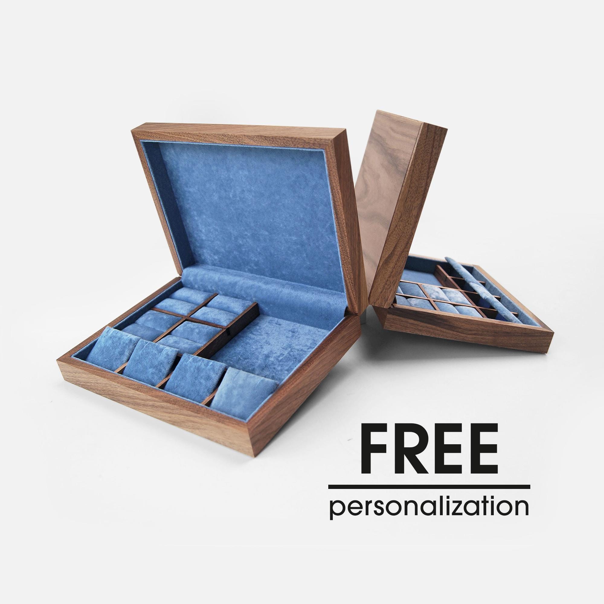 Custom Engraved Walnut Wood Storage Box, Wooden Earring Bracelet Ne...