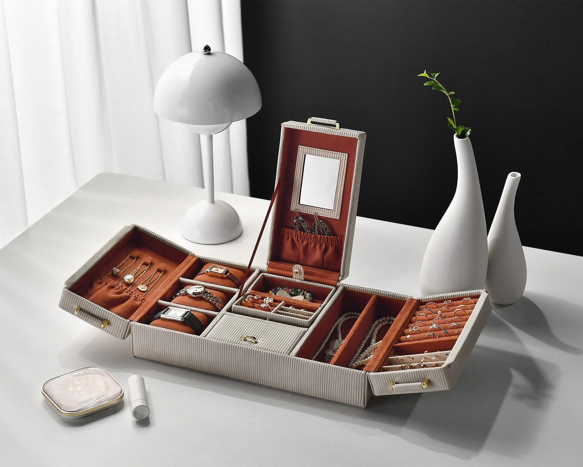 A compact yet thoughtful jewelry organizer, expanding jewel box, that brings charm and practicality ...