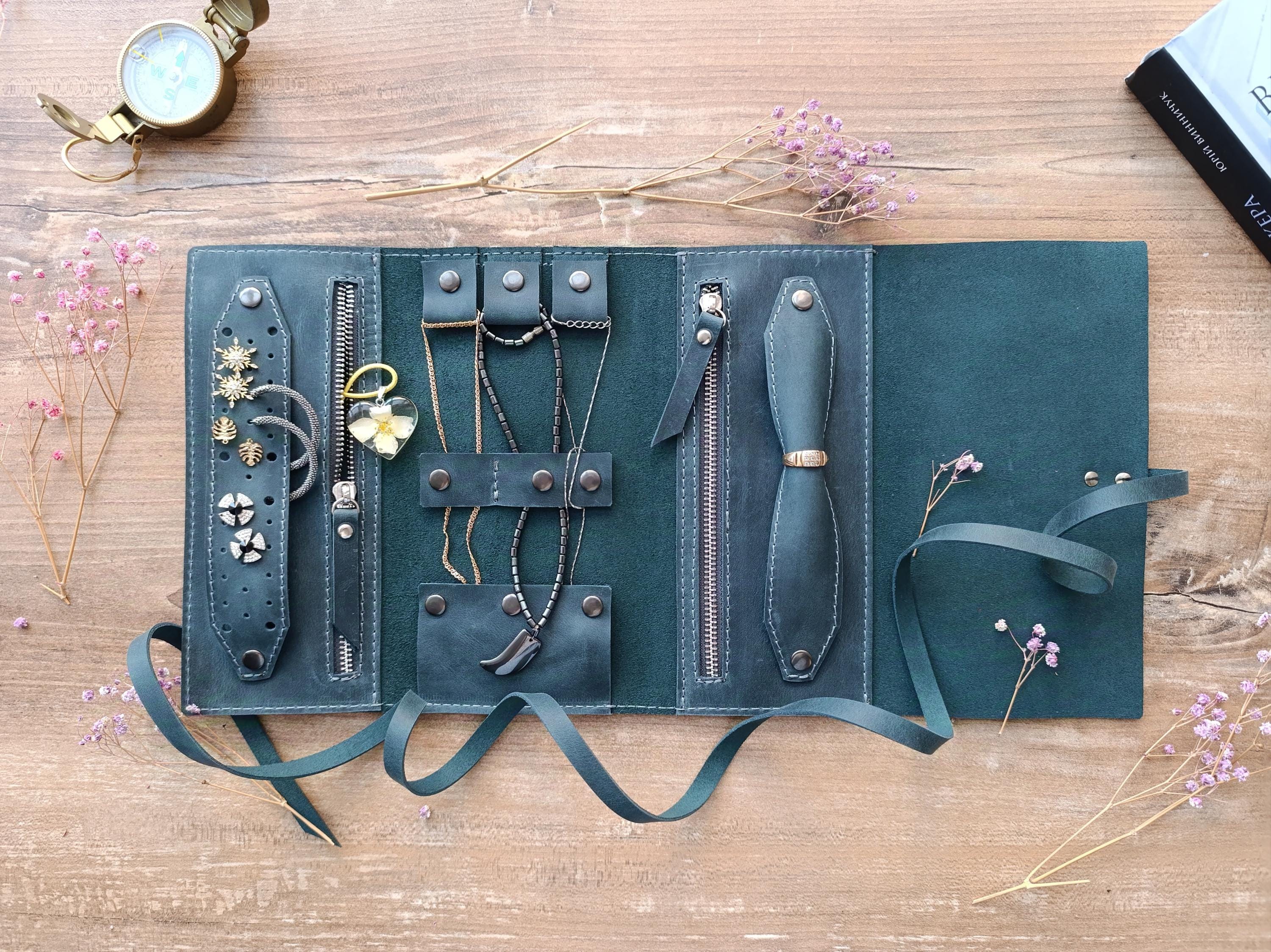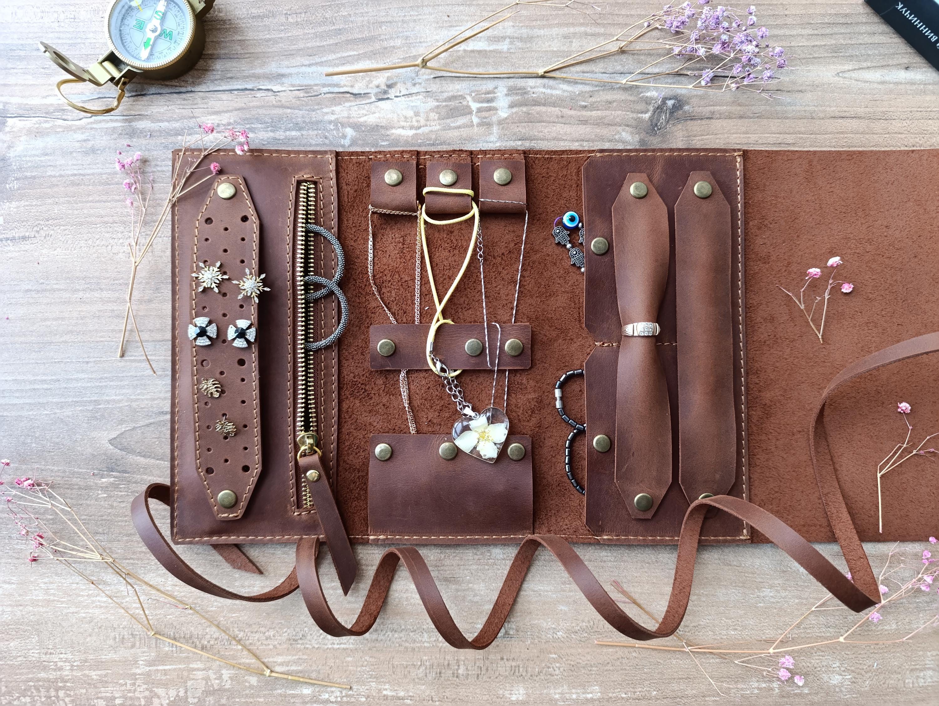 Custom jewelry roll, Leather jewelry case, Travel jewelry case, Cus...