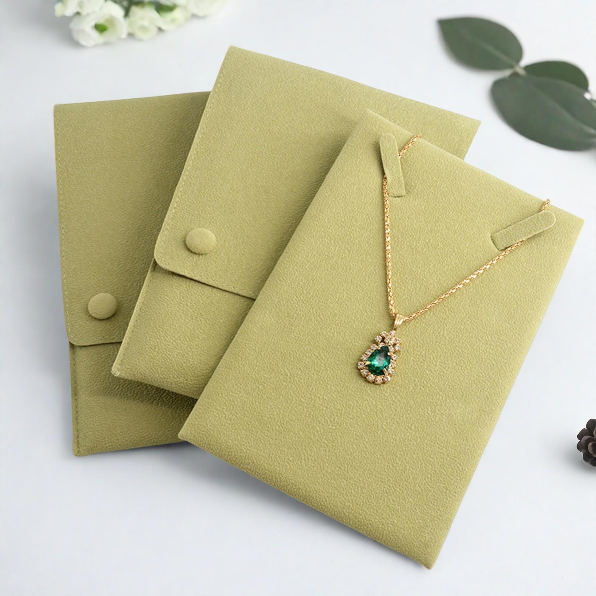 Green Necklace Pouches,Velvet Envelope snap Necklace Pocket,Jewelry...