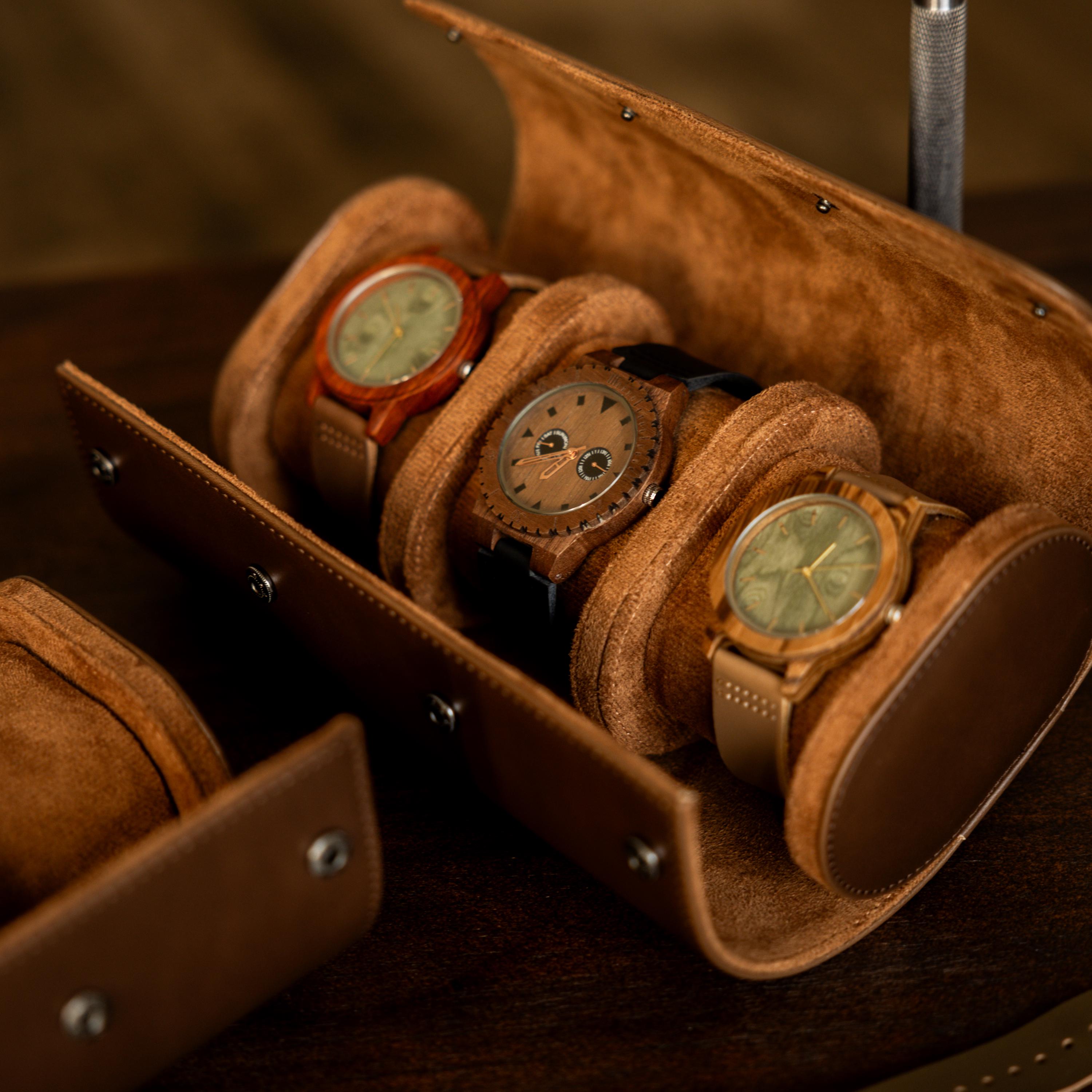 Vegan Leather Watch Roll - Unisex Travel Watch Case (1, 2 or 3 Slots) Keep your watches safe, secure...