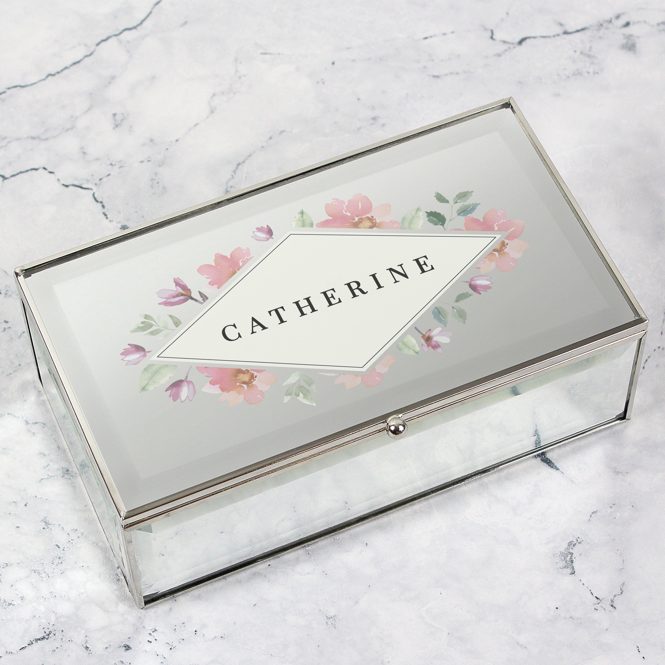 Personalised Floral Watercolour Mirrored Jewellery Box