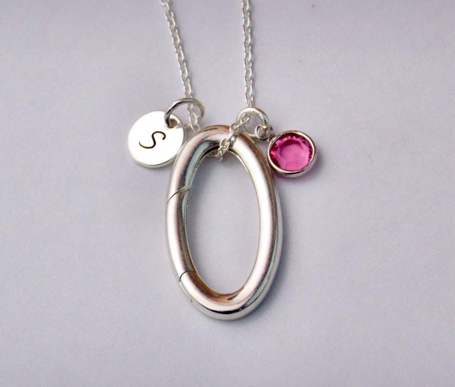 Personalized Ring Keeper Necklace, Custom initial Holder, Birthston...