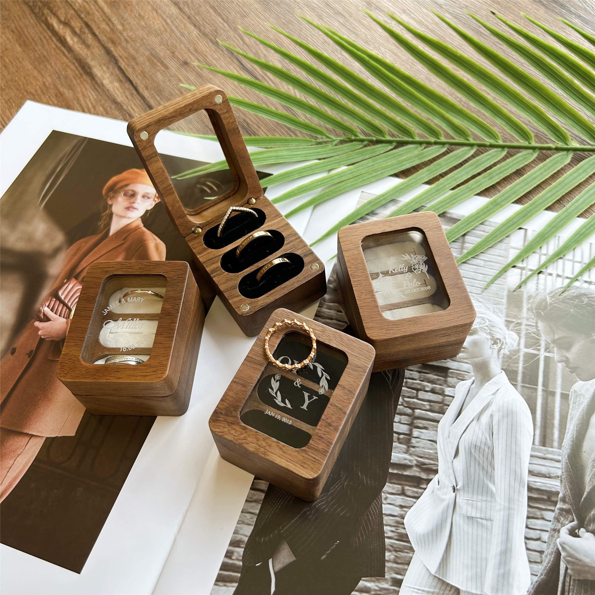 Custom Wood Ring Box, Wedding Ring Box for Ceremony, Ring Box for 3...