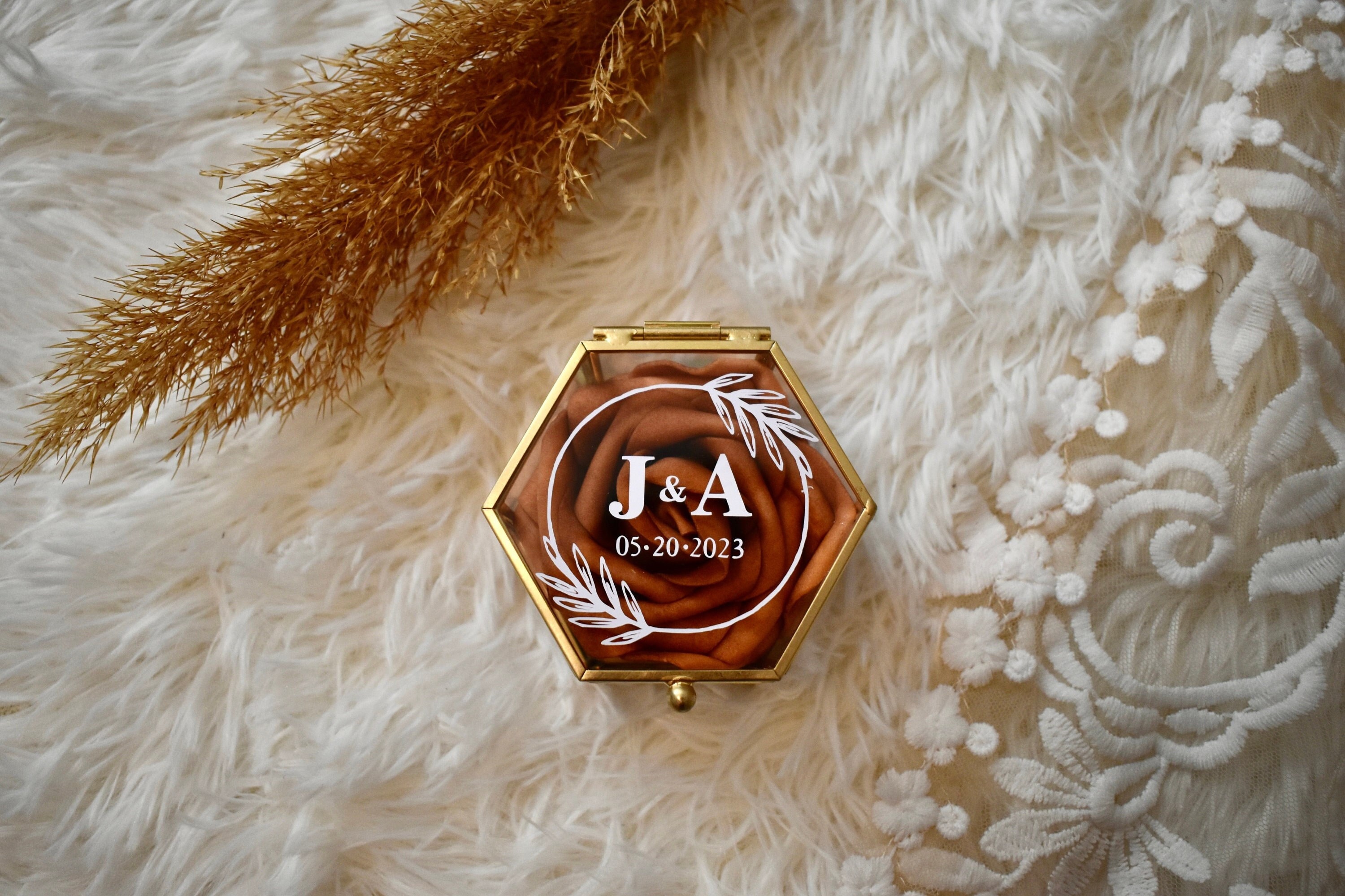 Personalized Ring Box, Geometric Ring Box, Ring Box for 3 Rings, Ri...