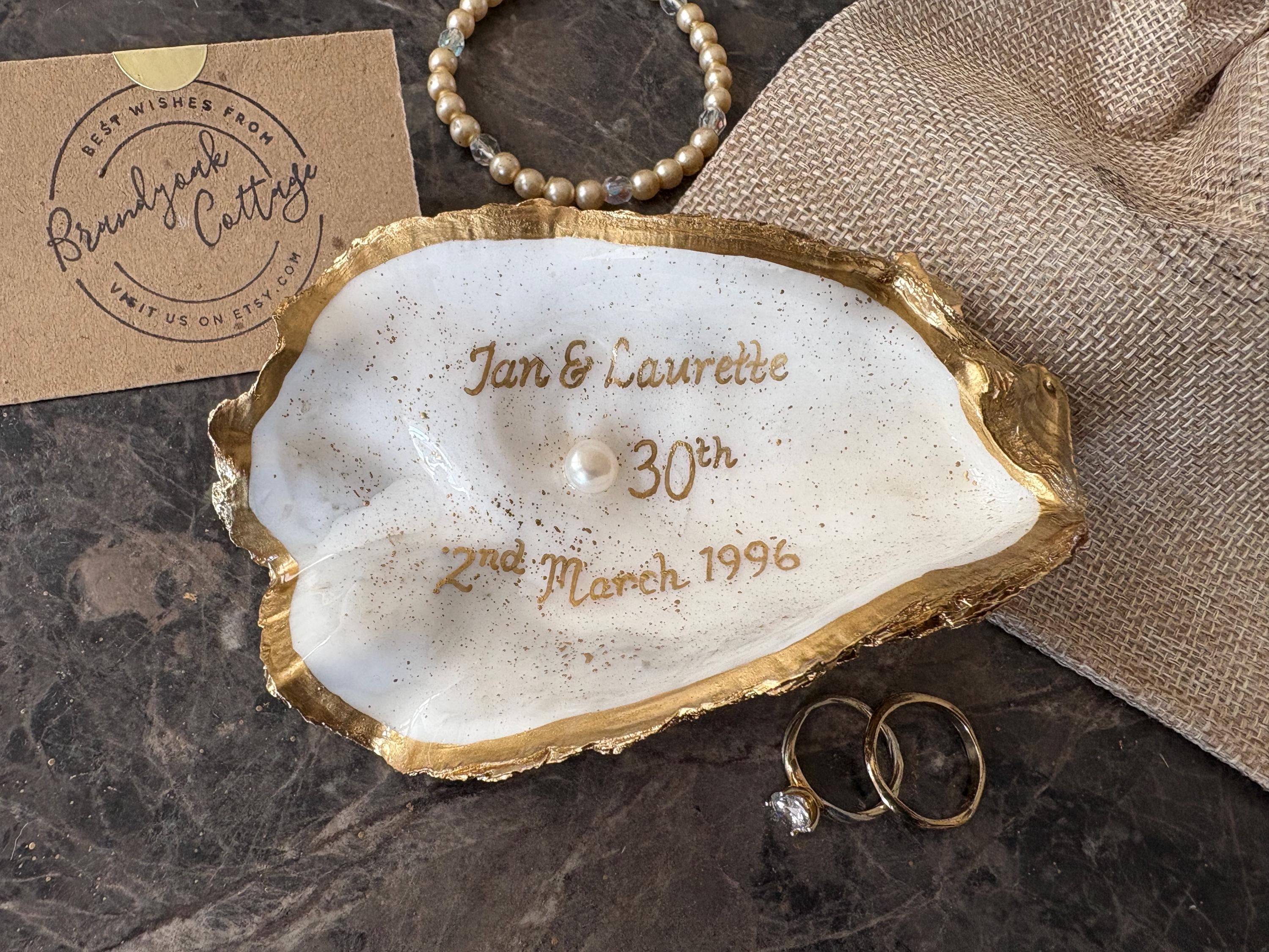 Pearl Oyster Shell |Pearl Wedding Anniversary Gold Oyster Shell Trinket Dish with Real Pearl | 30th ...