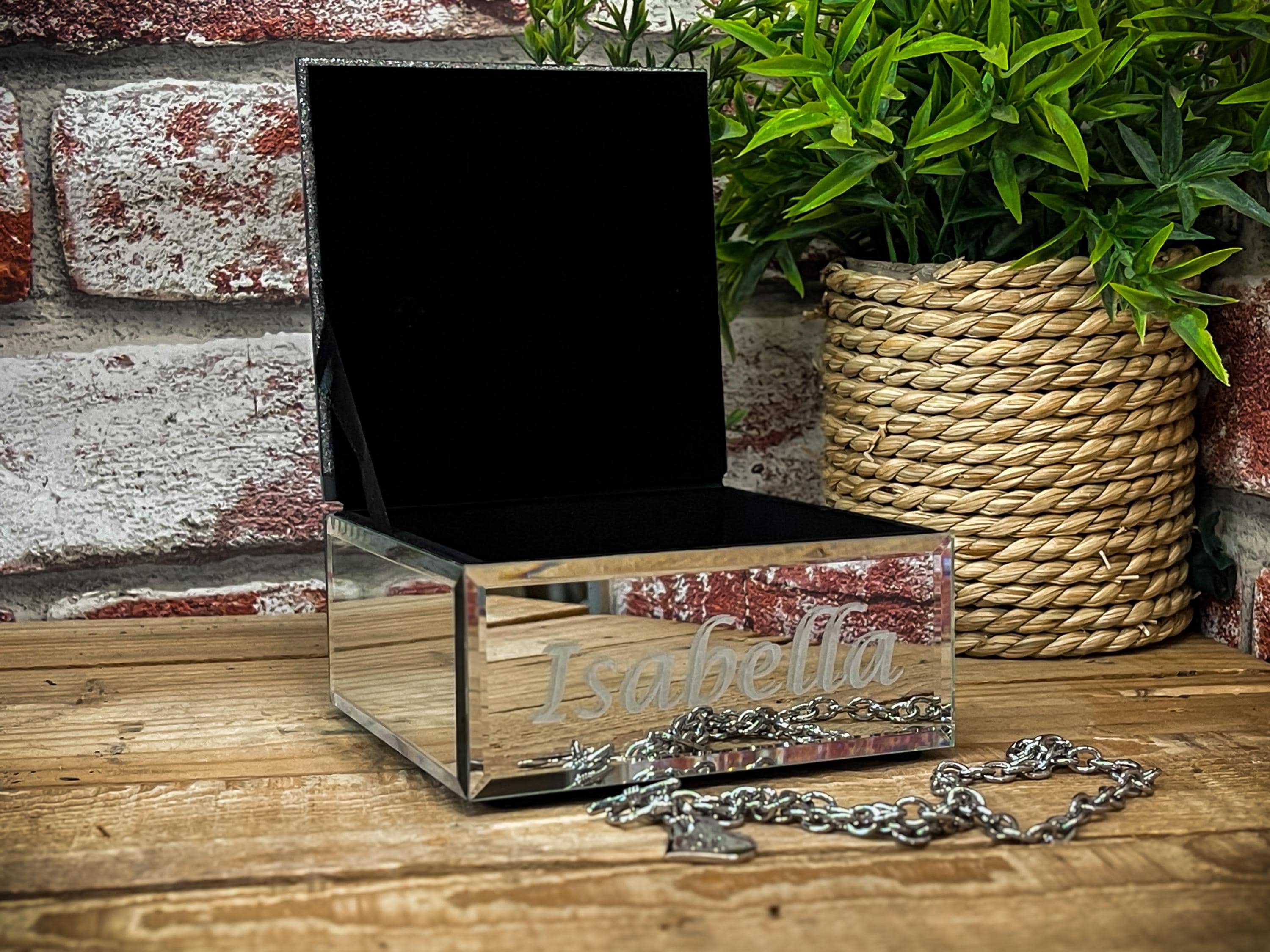 Personalised Mirror Glass Butterfly Trinket Box - Laser engraved wi...