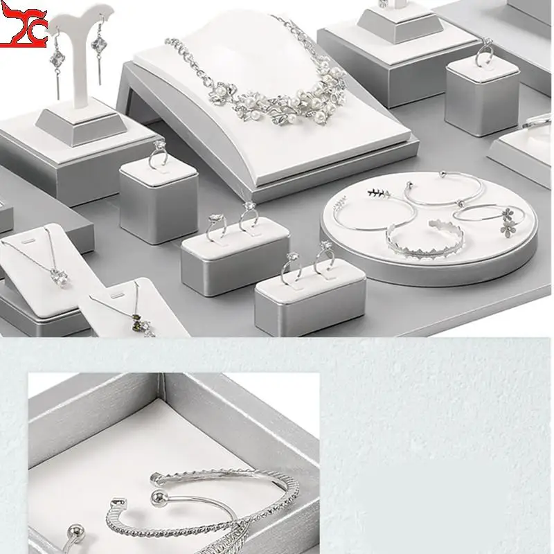 Silver White Jewelry Tray Earring Display Stand Ring Pendant Plate ...