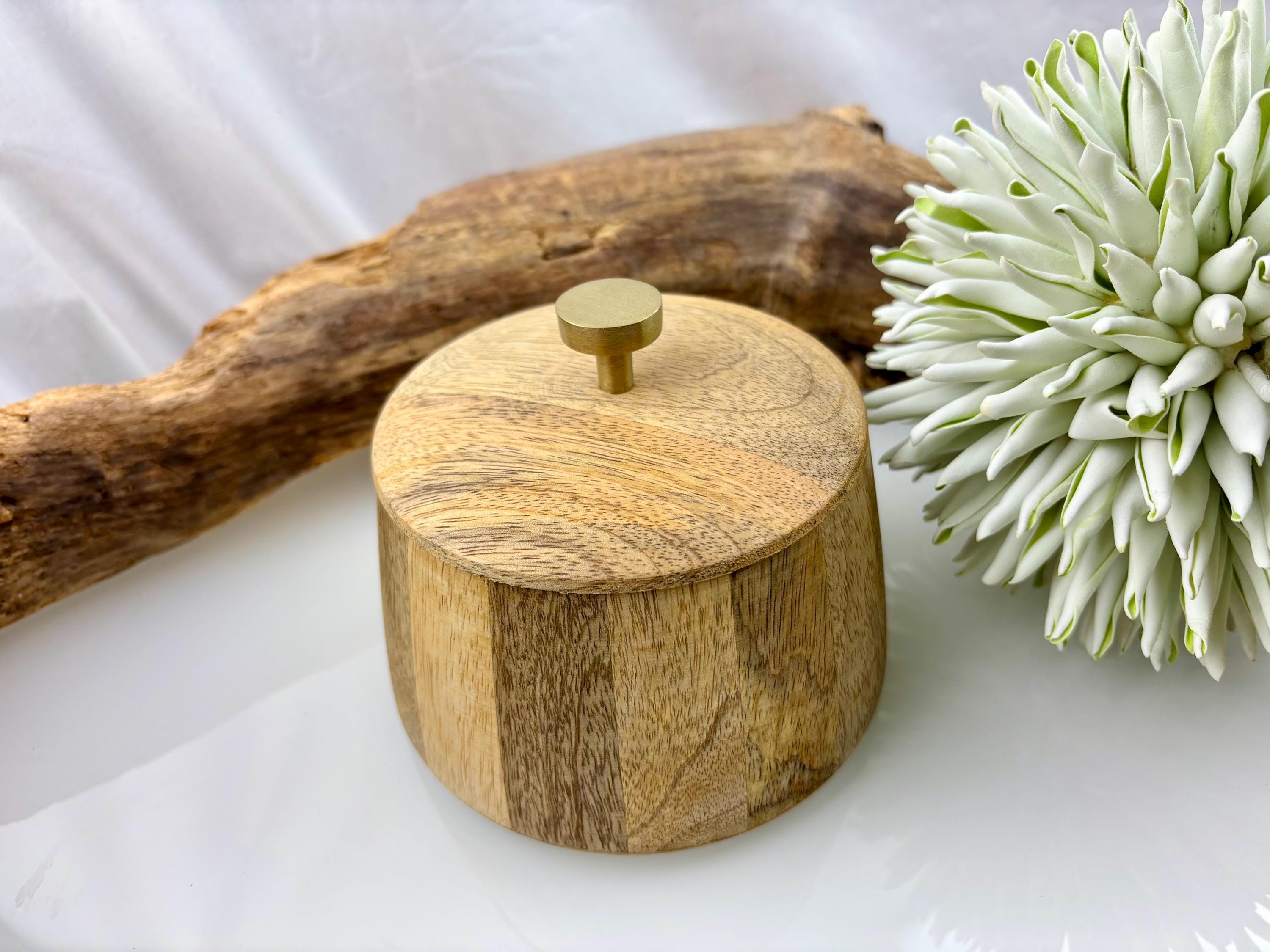 Here we have a beautiful wooden box made of mango wood, with a lid and a golden metal handle. Each w...