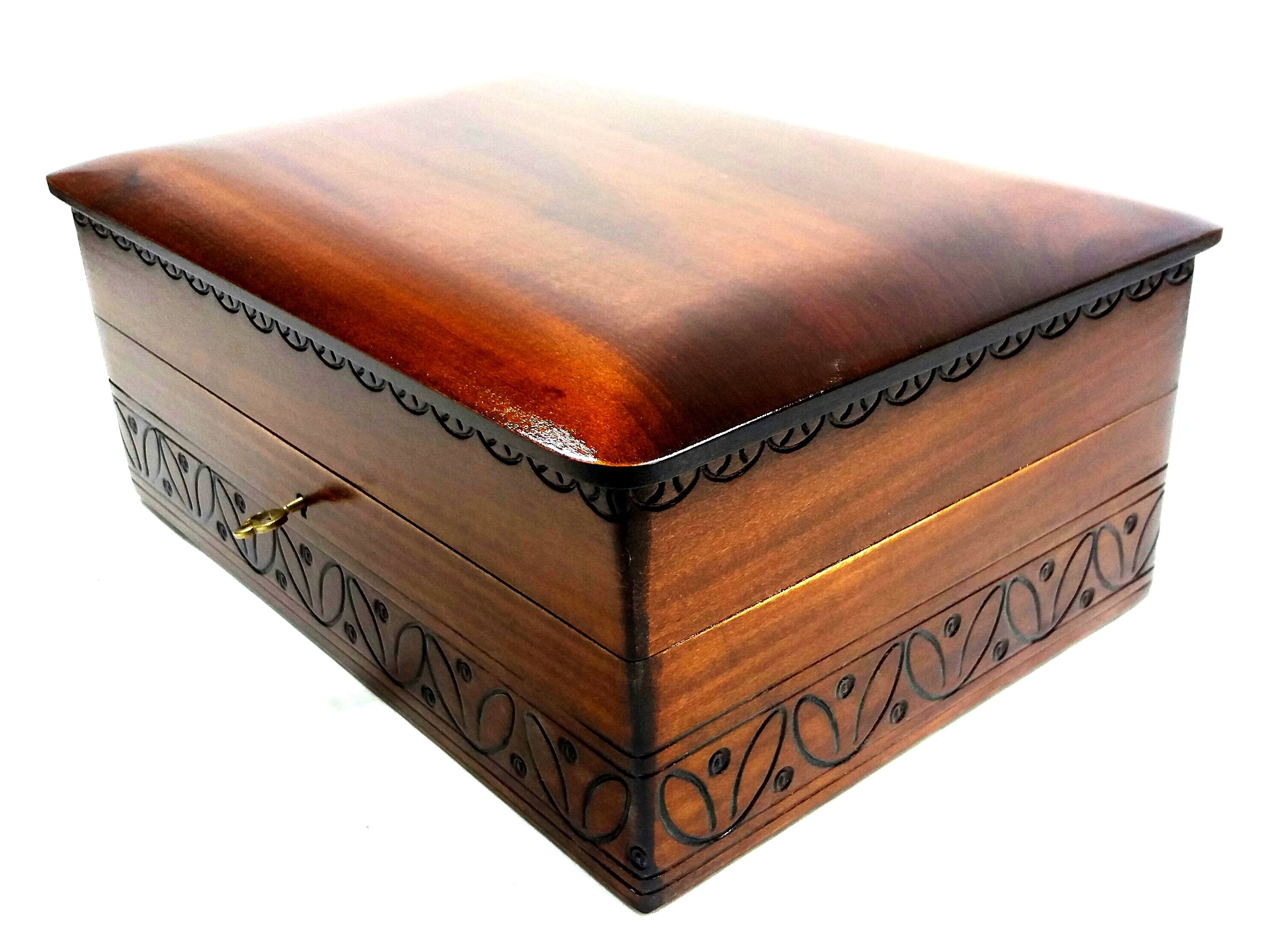 DECORATIVE STORAGE WOODEN BOX - made from wood and perfectly finished by hand - hand carved - locked...