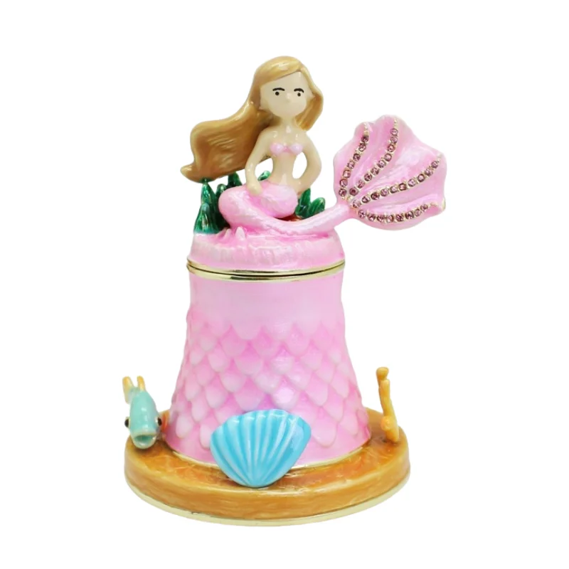 SHINNYGIFTS Enamel Pink Mermaids Trinket Box Hand Painted Hinged Rh...