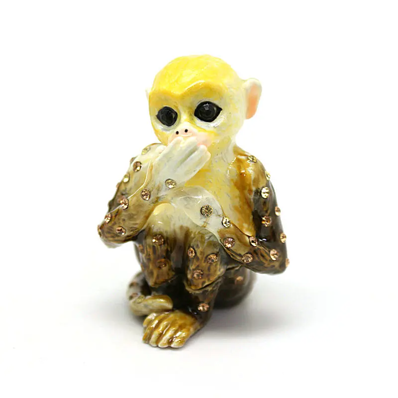 SHINNYGIFTS Hand Painted Enamel Monkey Figurine Hinged Jewelry Box/...
