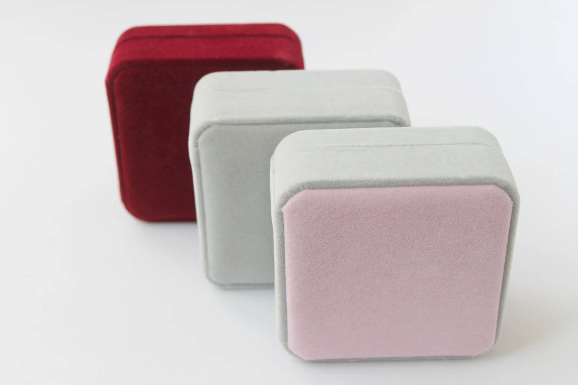 "This listing is for an elegant hinged velvet square jewelry gift box in gray/gray pink/dark re...