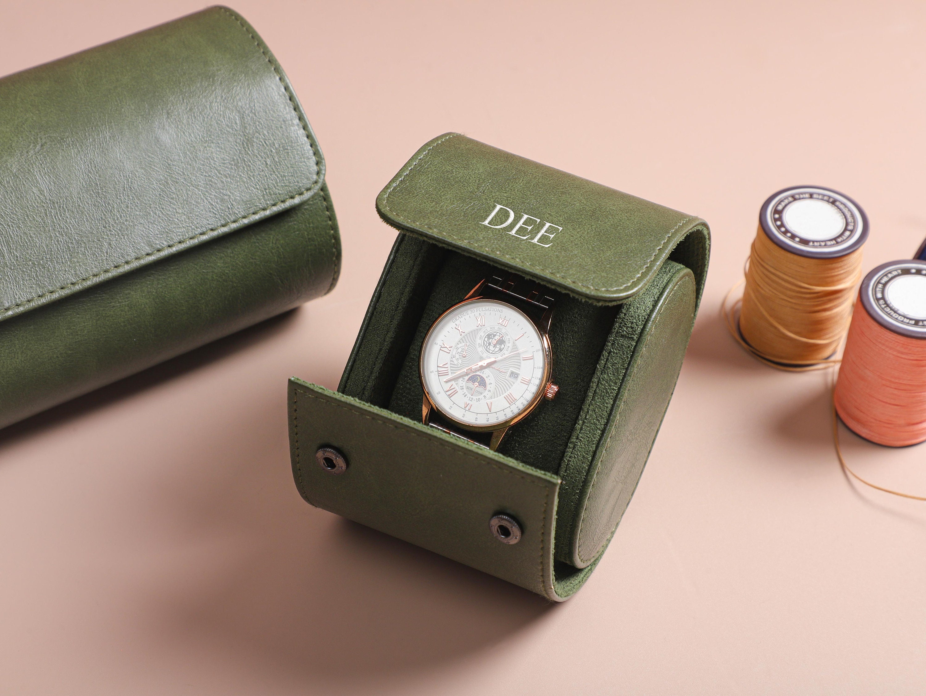 Vintage Leather Watch Roll, Personalized Leather Watch Case, Travel...