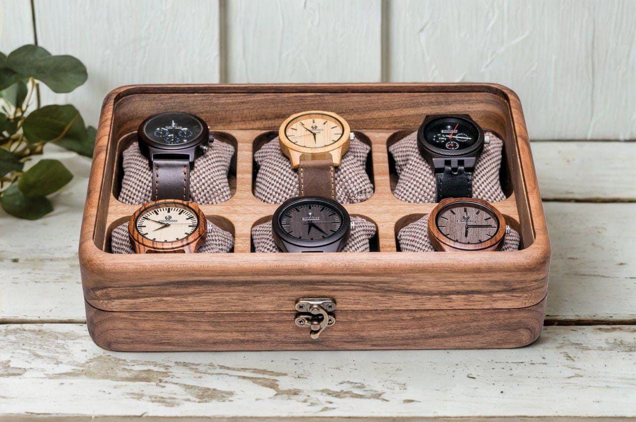 Vintage watch box, Walnut watch storage box, Wood watch case, Watch...