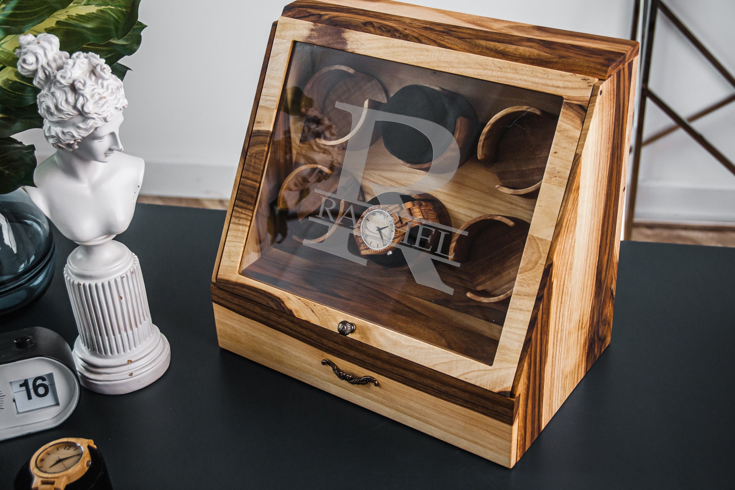 Handmade watch box for men made of natural wood. Wooden watch box has enough space for your stuff an...