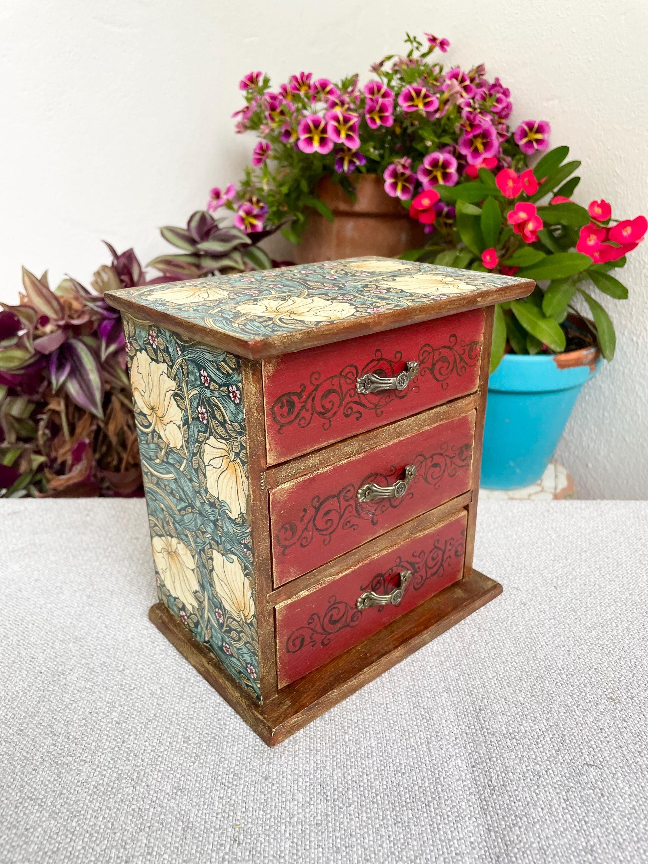William Morris Tulips -Unique mini drawer-Hand decorated wooden dra...
