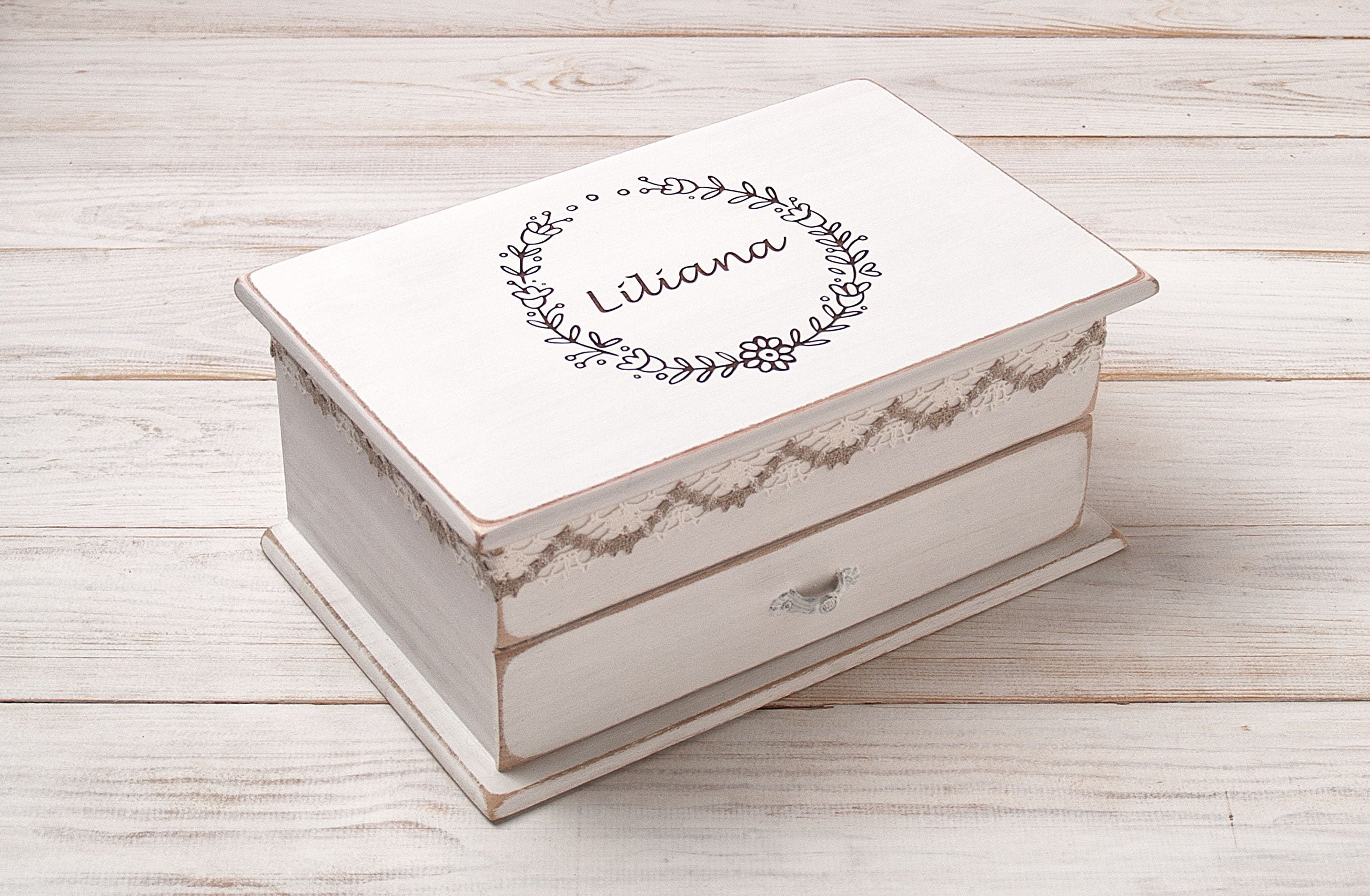 Personalized Jewelry Organizer Box, Distressed Wooden Jewelry Box w...
