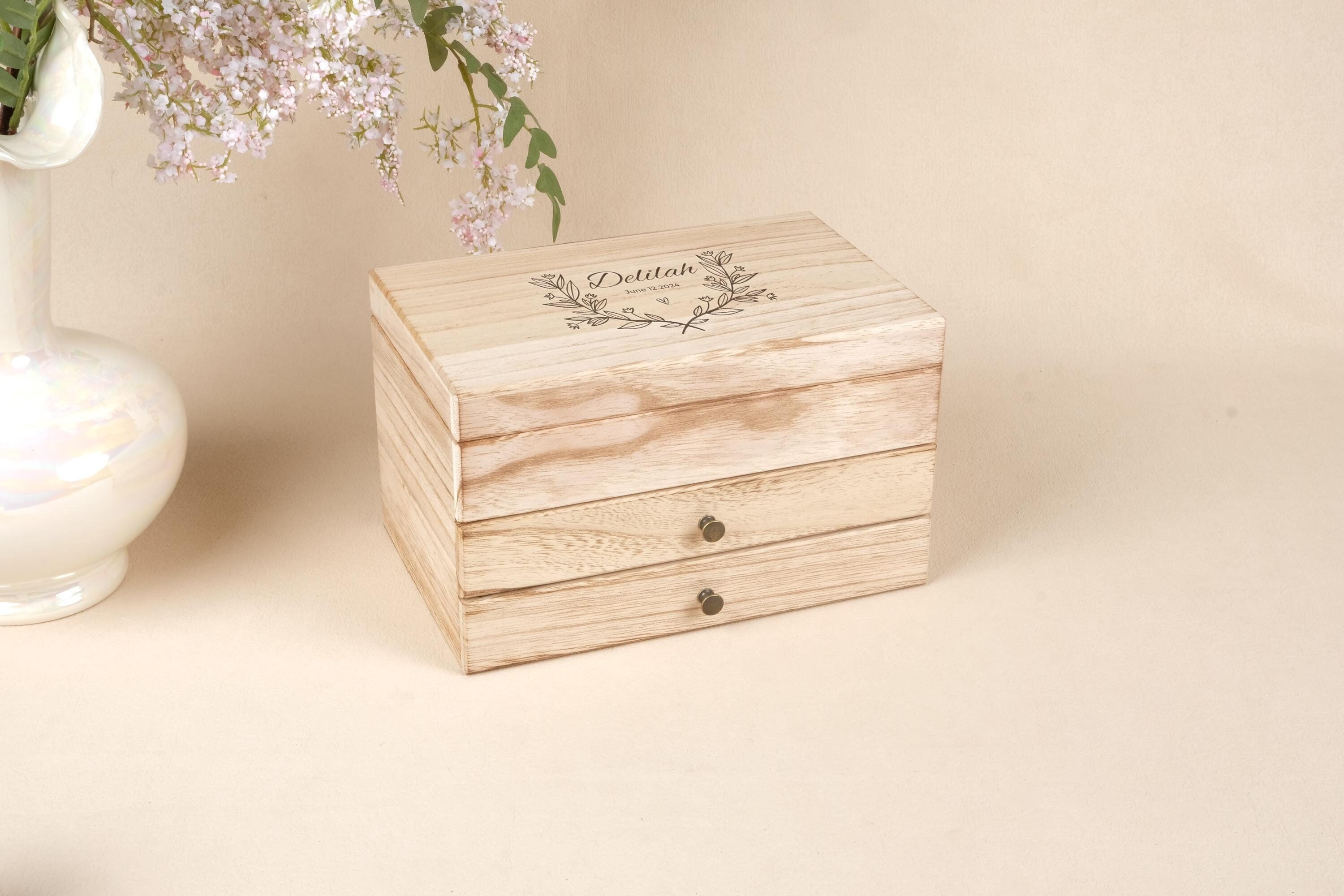 Custom Engraved Wooden Jewelry Box with Drawers Double Drawer Jewel...