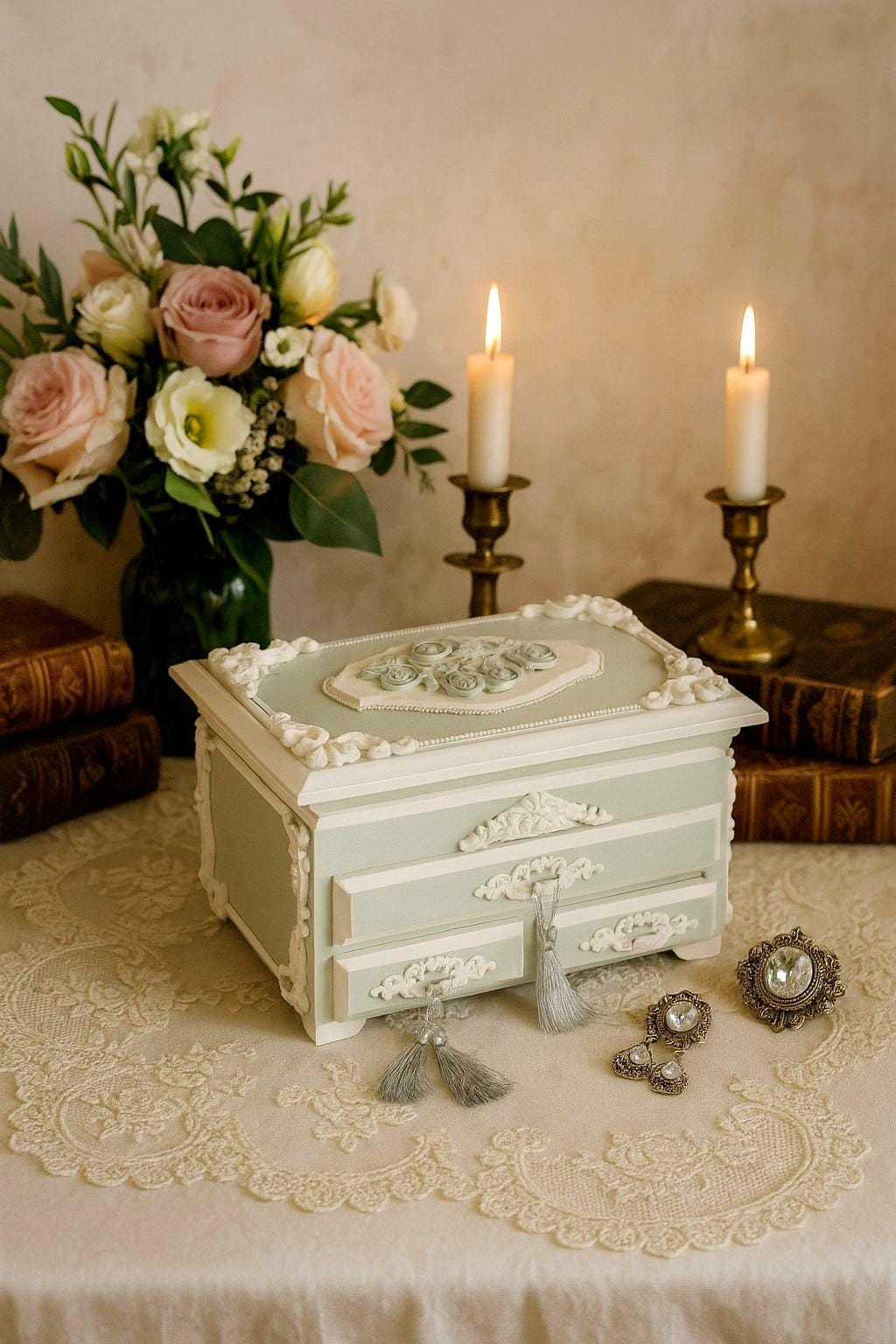 Vintage Jewelry Case Box Stand Jewellery Cabinet Drawers White Pain...