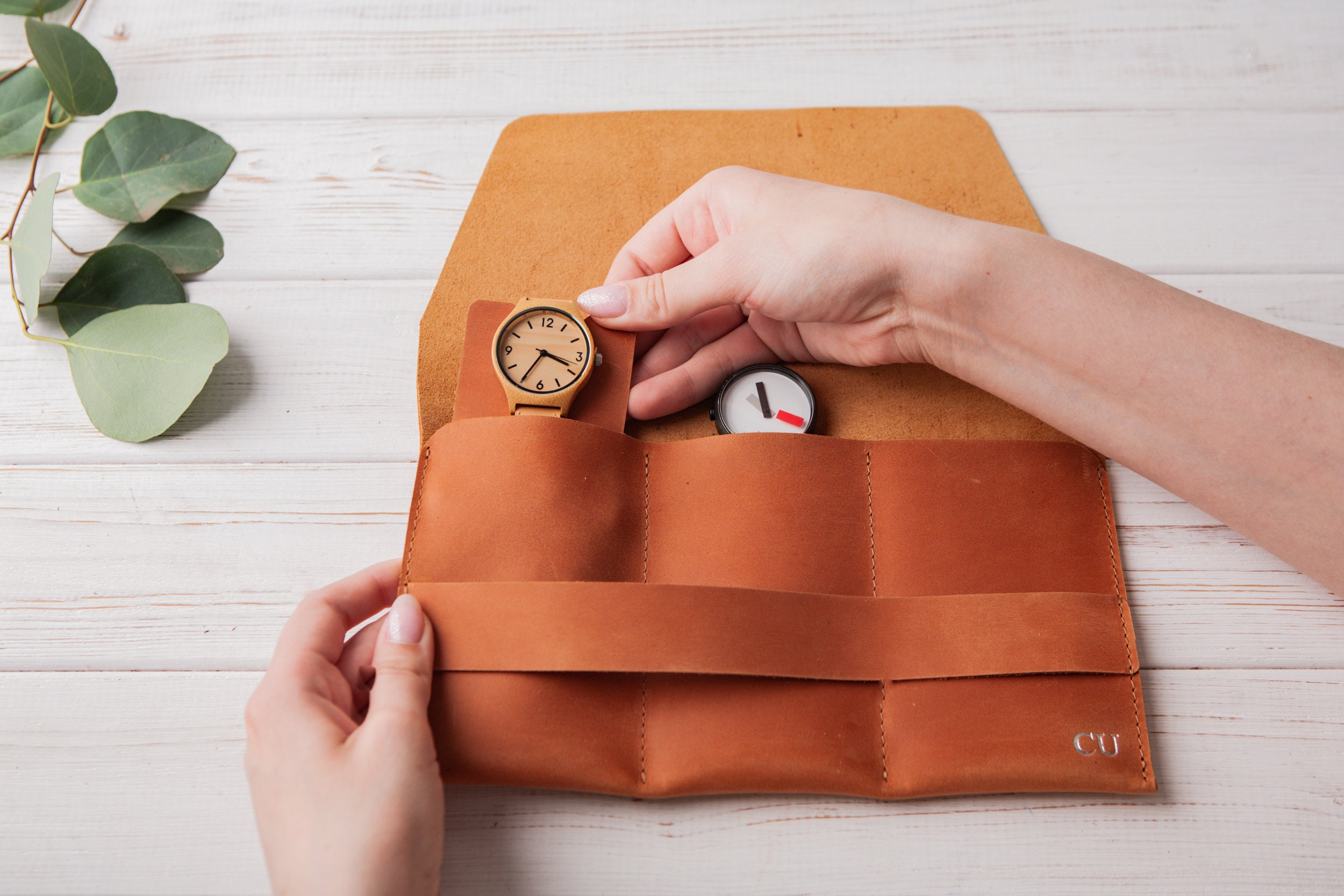 Personalized Leather Watch Case, Watch Travel Pouch, Engraved Watch...