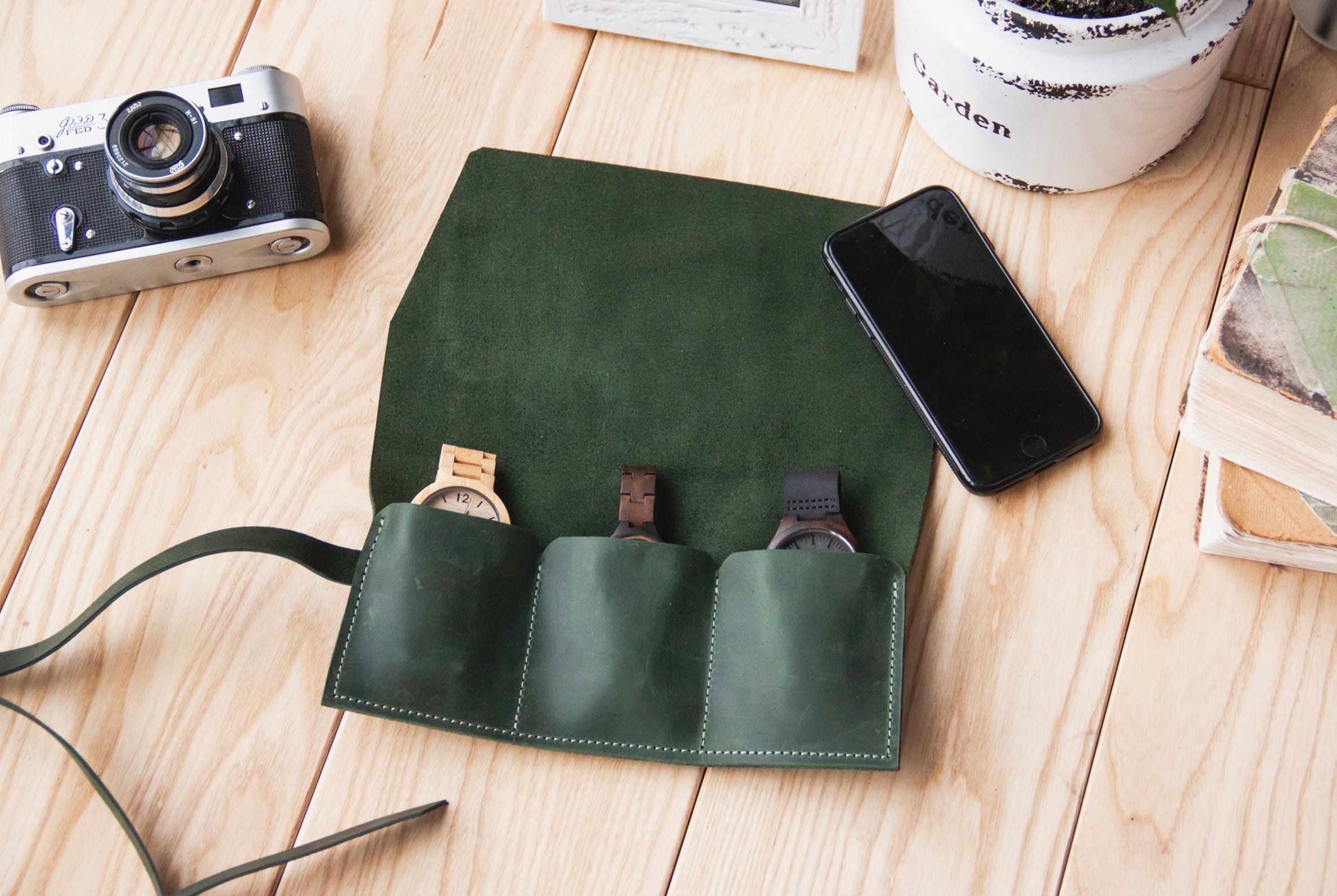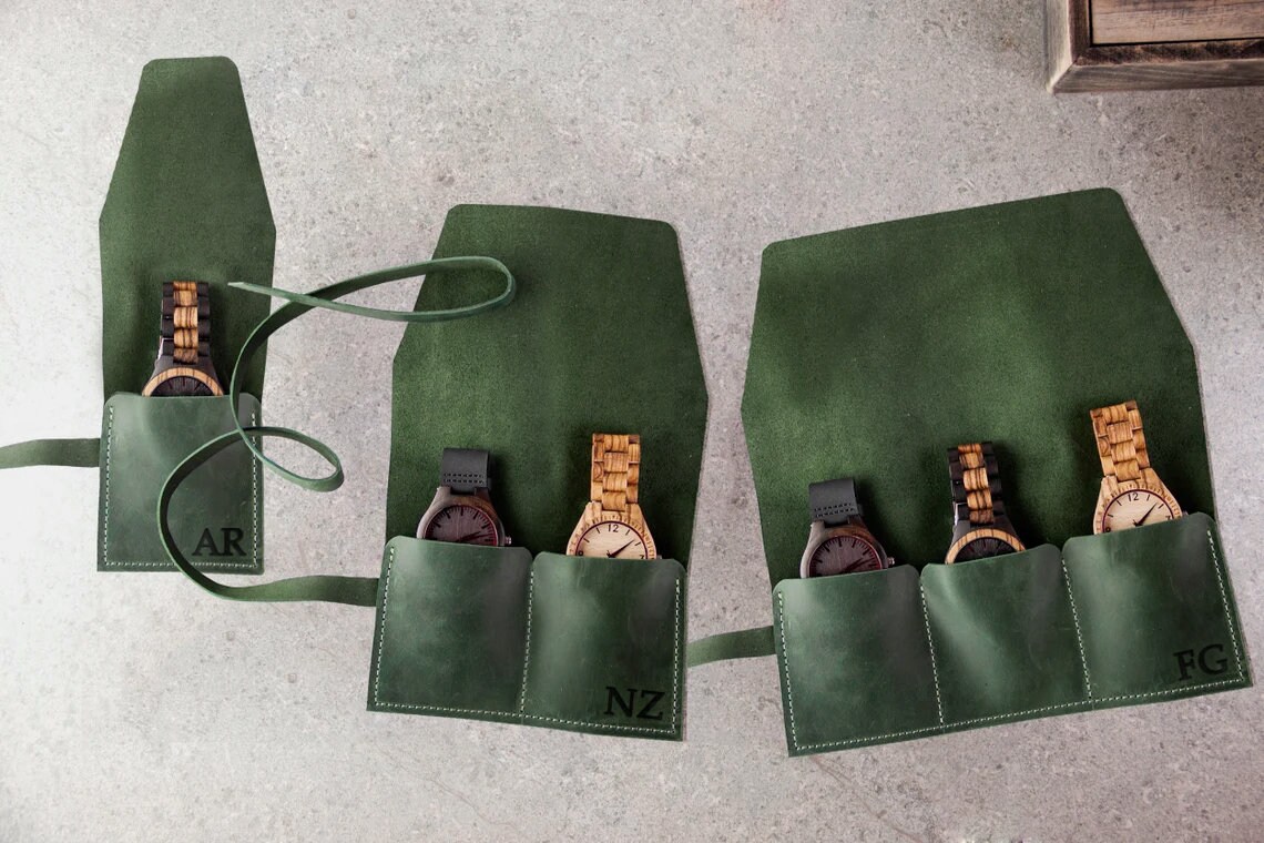 Leather watch roll personalized, Watch roll green, Travel watch case roll, Leather watch roll case, ...