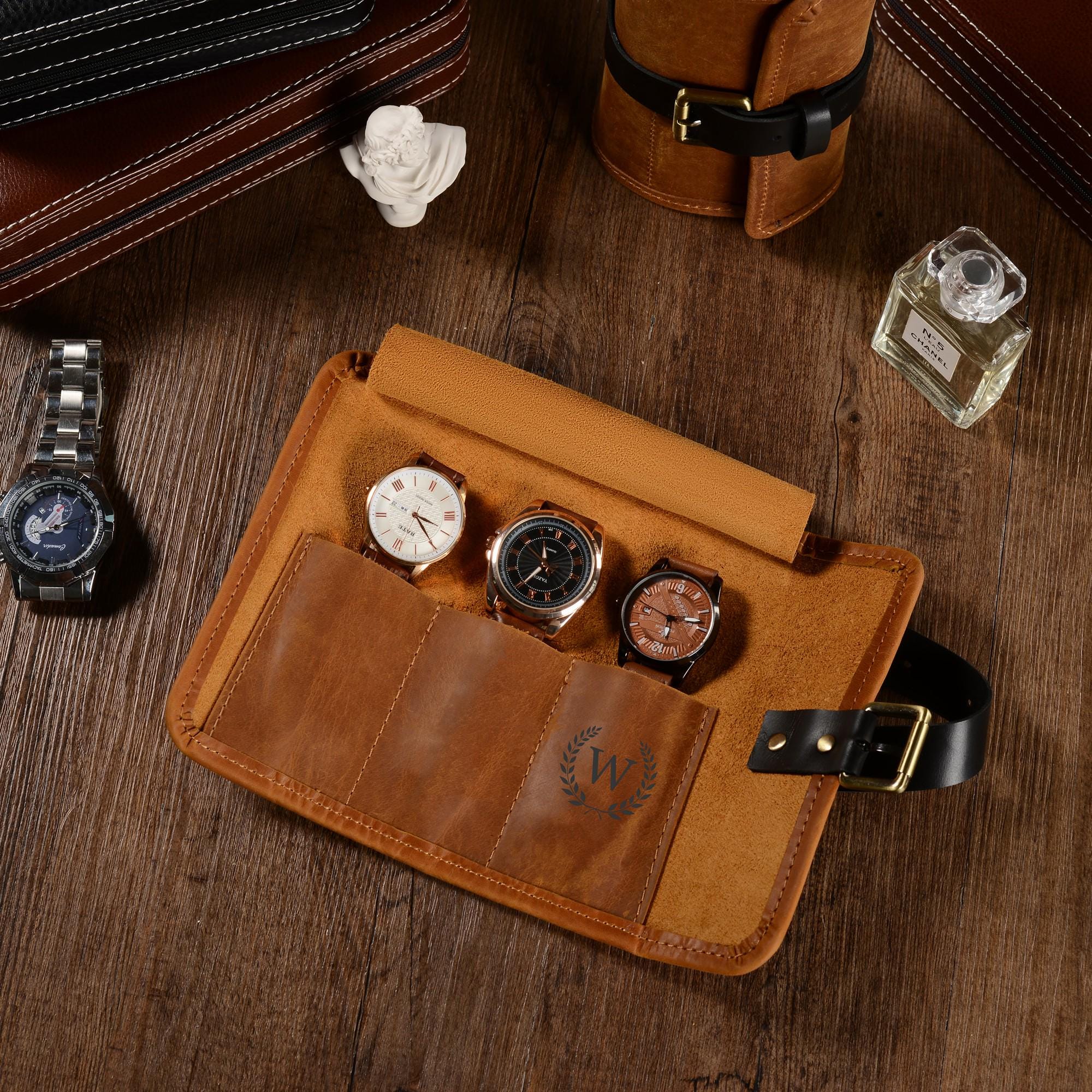 Watch roll leather, Personalized watch roll with monogram, Travel w...