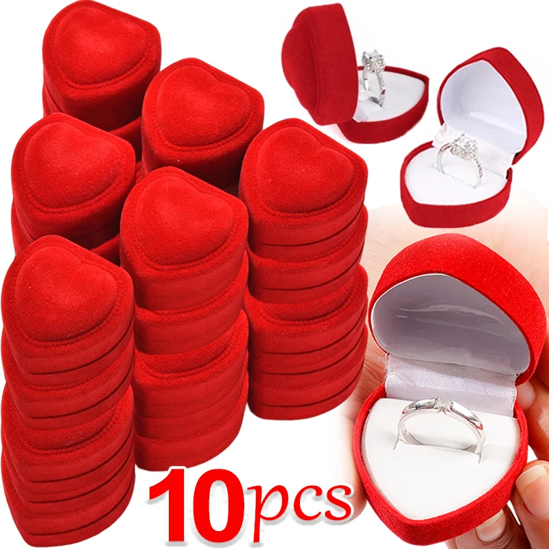 Velvet Red Heart Shape Ring Boxes Jewelry Boxes Earrings Display Ca...