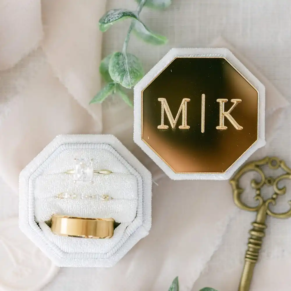 Personalised Acrylic Topper Velvet Ring Box Wedding Octogon Ring Box Engagement Proposal Idea Double...