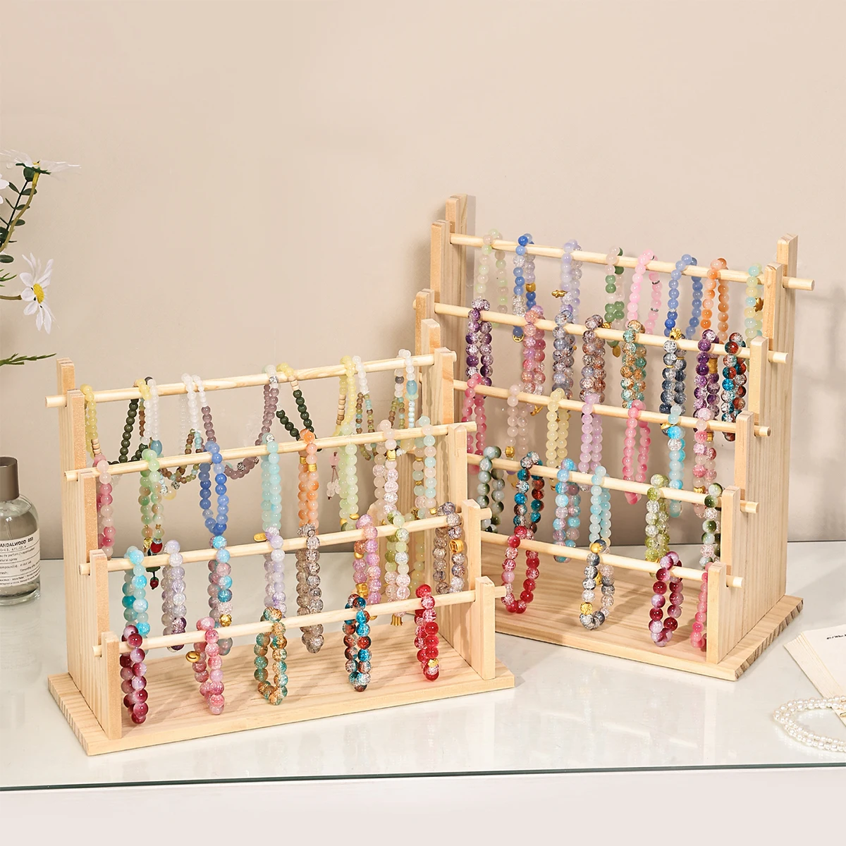 1pc multi-functional wooden bracelet tiered display stand headband ...