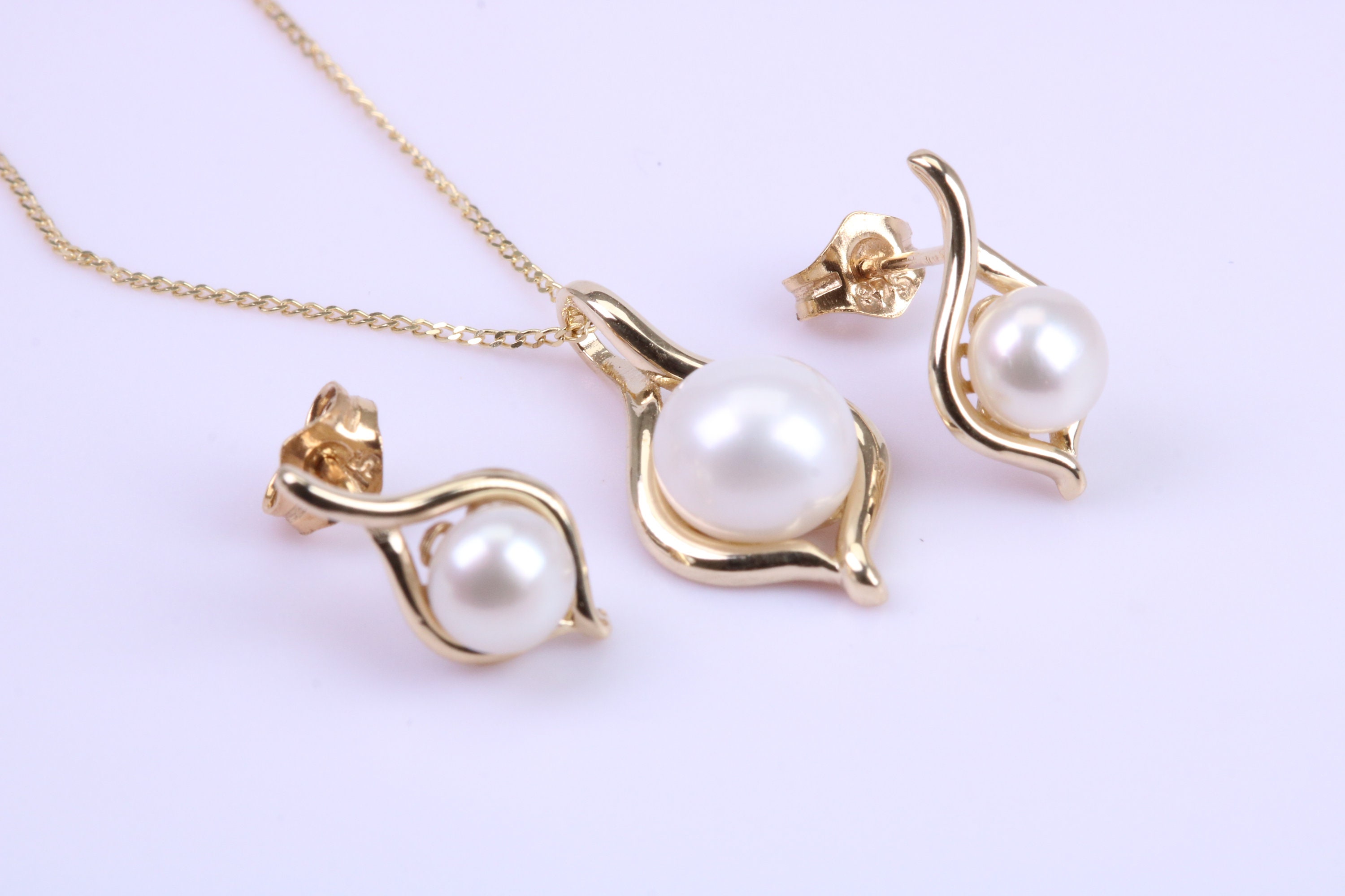 Teardrop Cultured Pearl set Necklace with matching Earrings Made from solid 9ct Yellow Gold Teardrop...