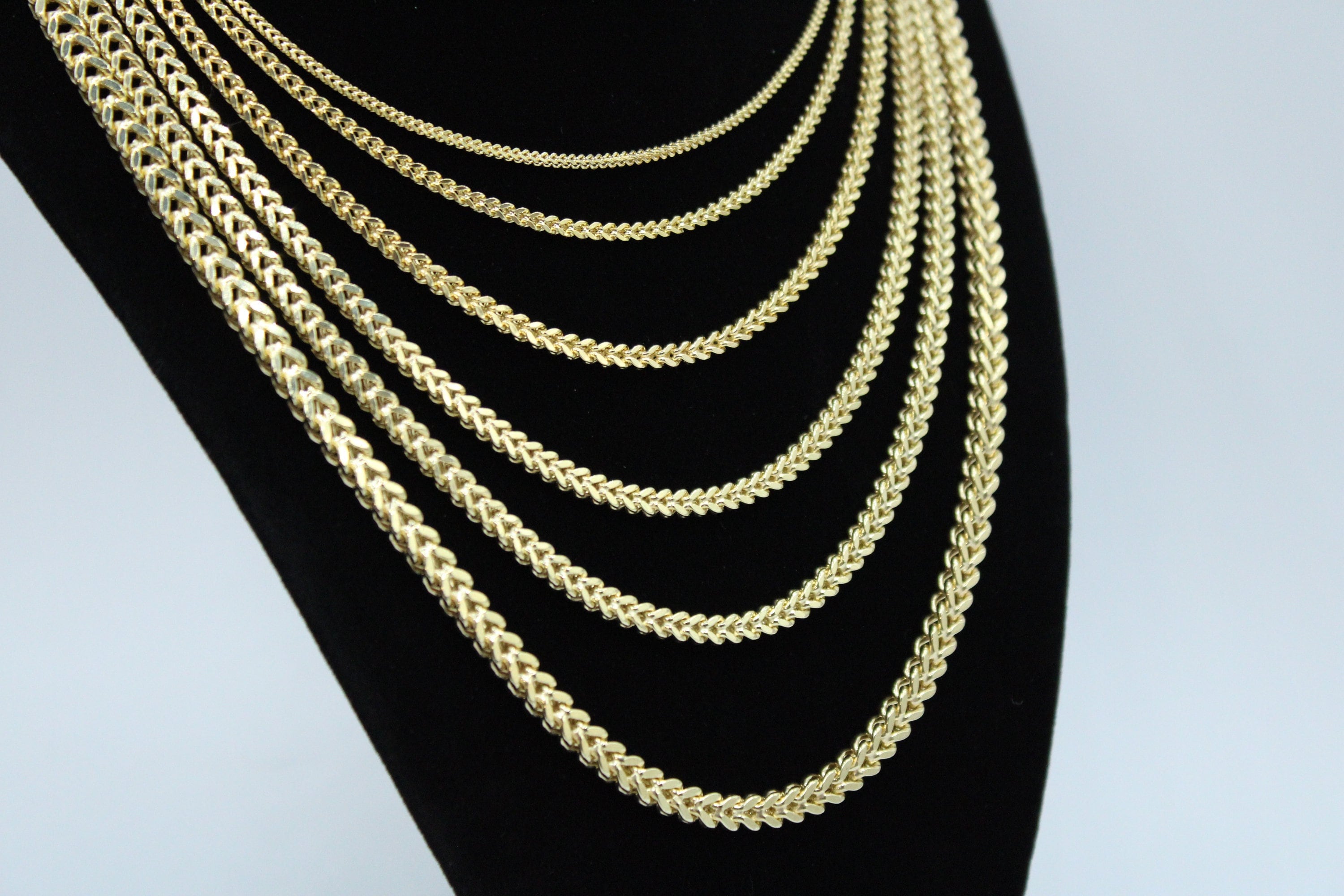 "10K Real Solid Gold Franco Chain Necklace and Bracelets, 16\"-26\" inch, 2mm - 7.5mm...