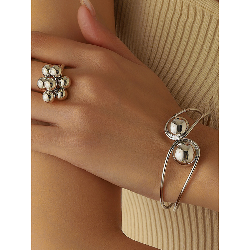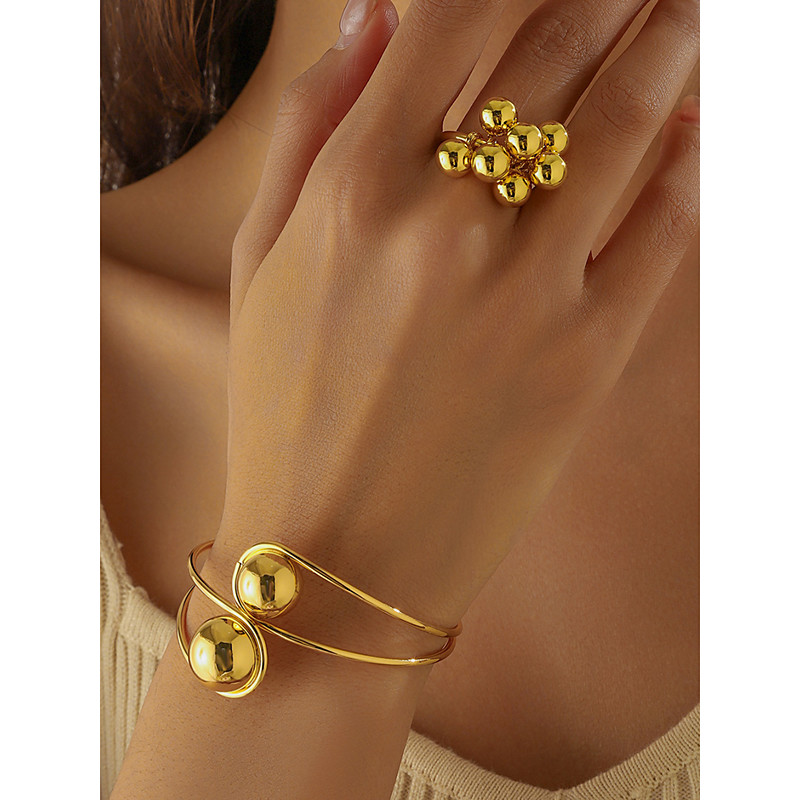 Women's Gold-Tone Ball Bead Bracelet and Ring Set - Modern Minimali...