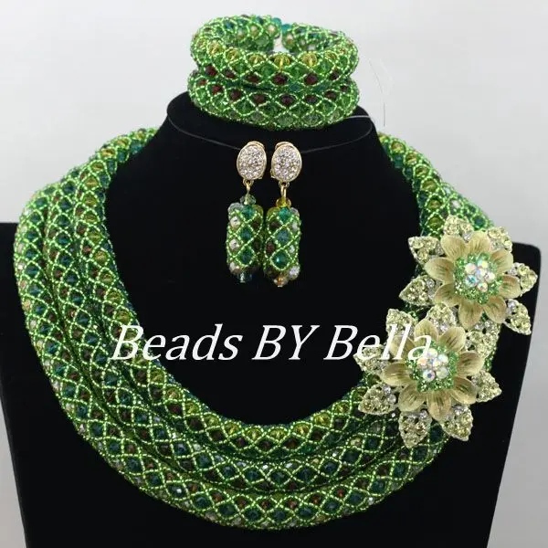 New Big Full Beads African Wedding Bridal Jewelry Sets Green Crystal Nigerian Wedding African Jewelr...