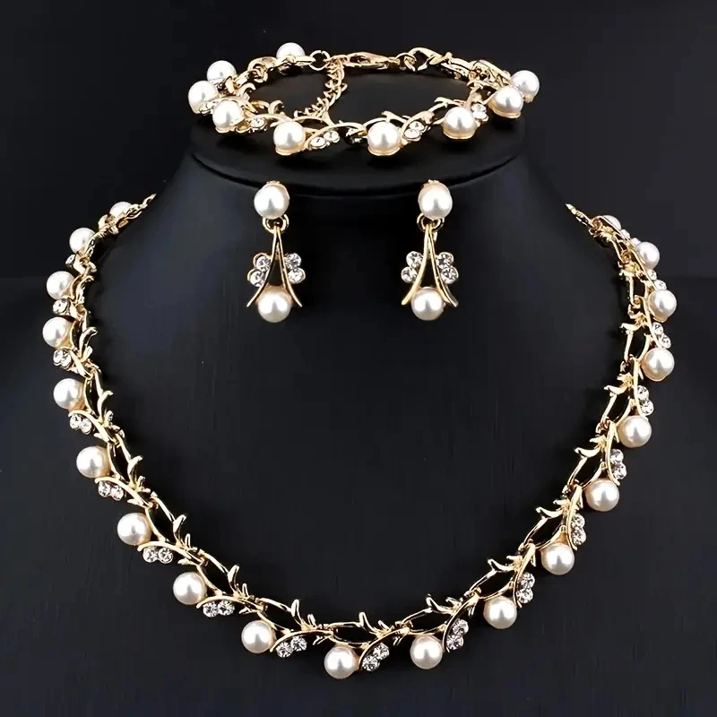 4 Pcs/set Fashion Retro Women's Jewelry Set Rhinestone Artificial P...