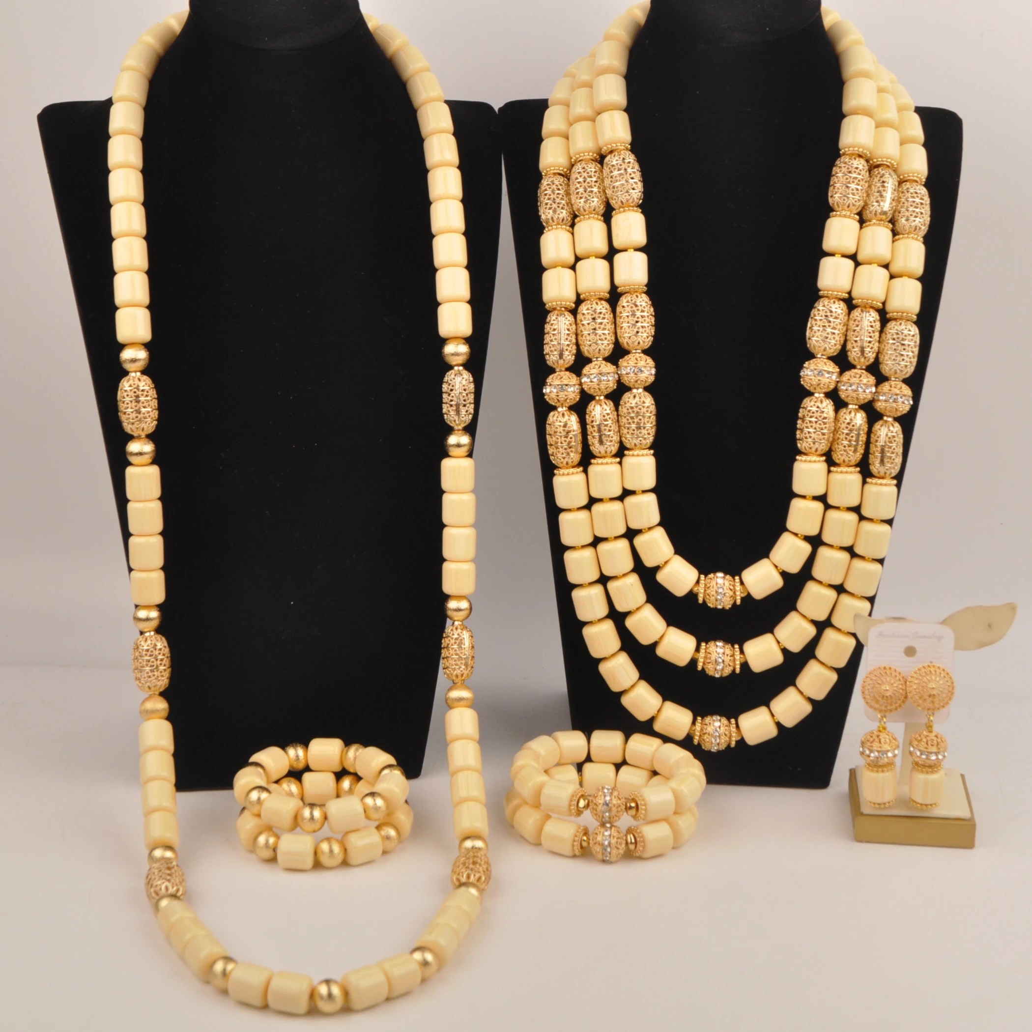 White Artificial Coral Couple Set African Wedding Nigerian Beads Jewelry Sets