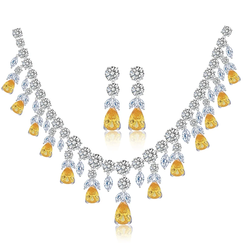 CWWZircons Long Tassel Water Drop Earrings Necklace Sets for Women Sparkling Yellow Cubic Zirconia W...